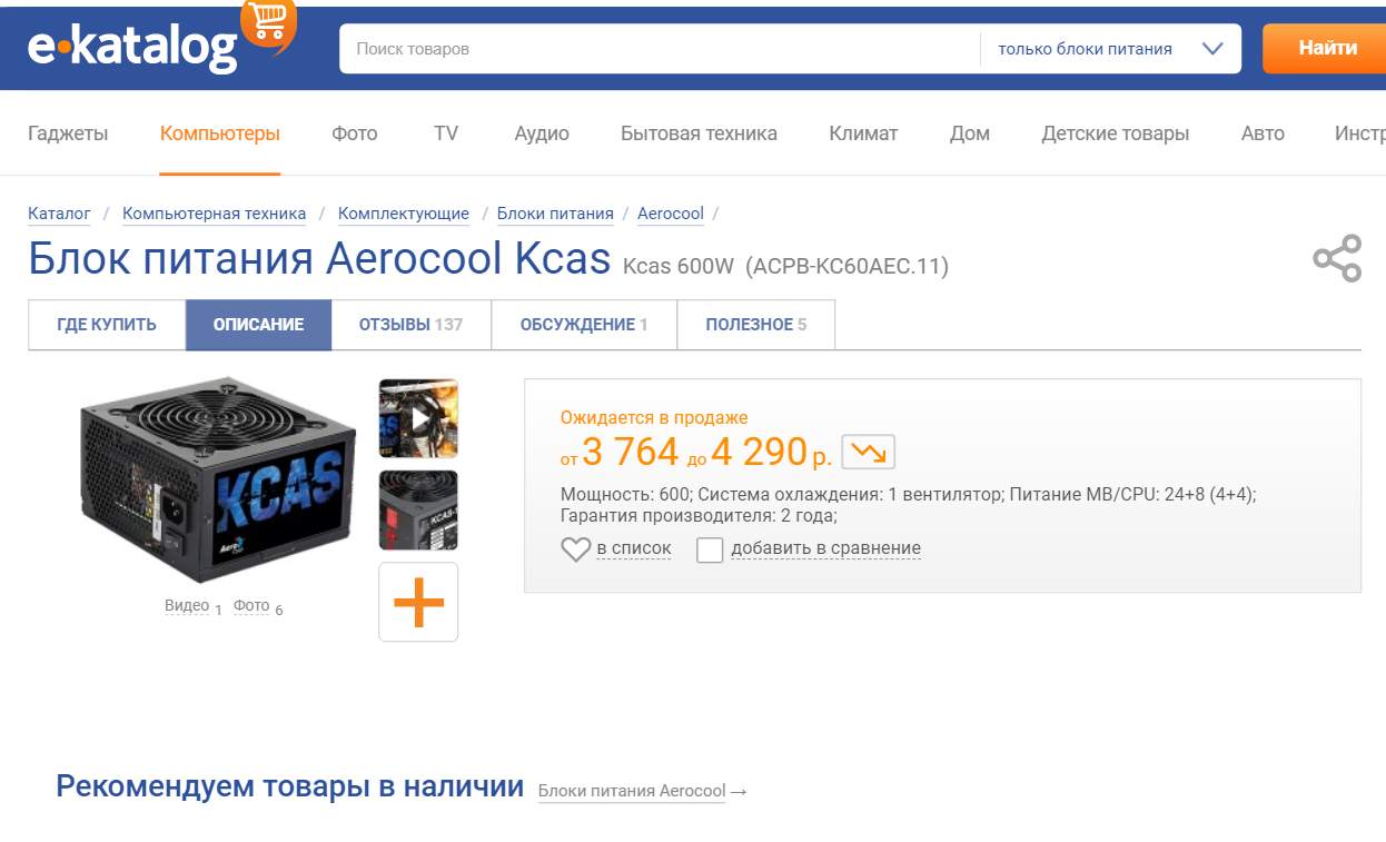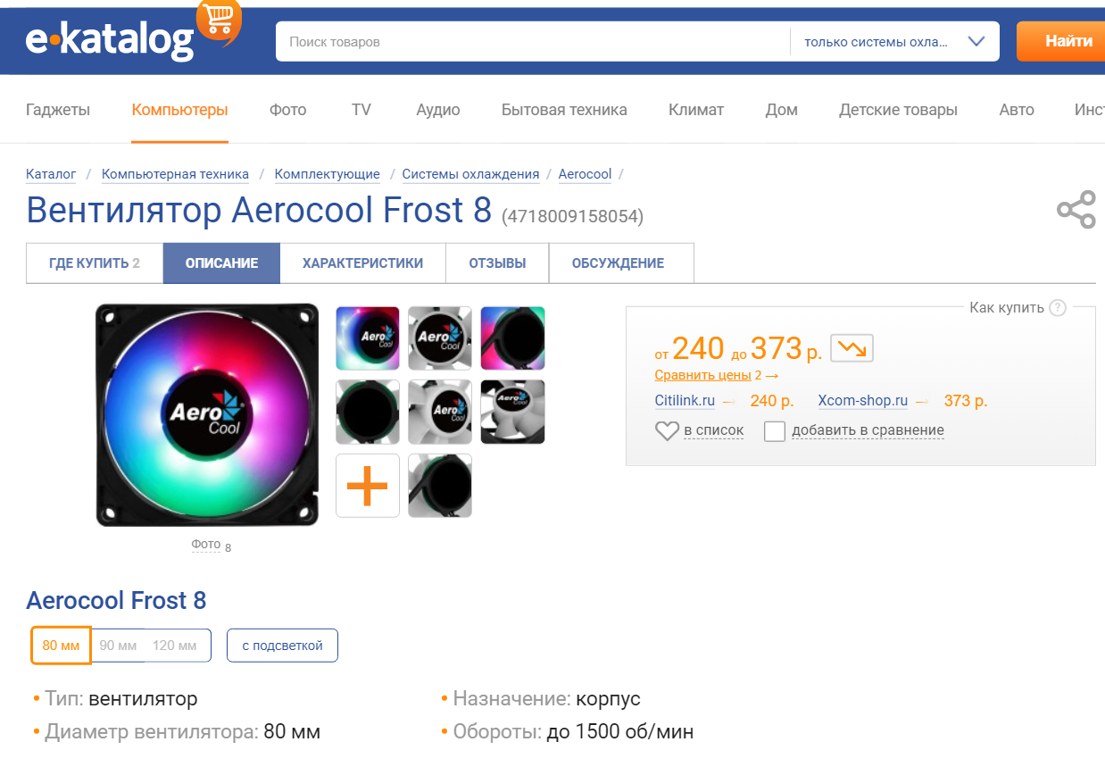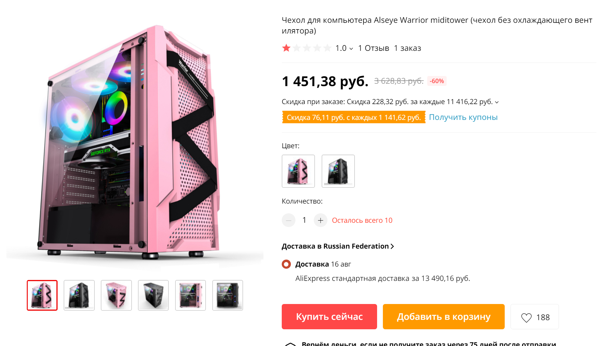 Так как у нас нет лишних денег, то мы возьмем корпус от Аэрокул. Самый бюджетный.