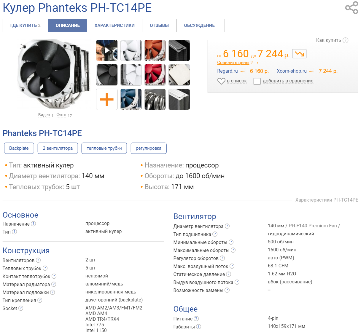 В качестве охлаждения ЦП возьмем недорогой двубашенный кулер.