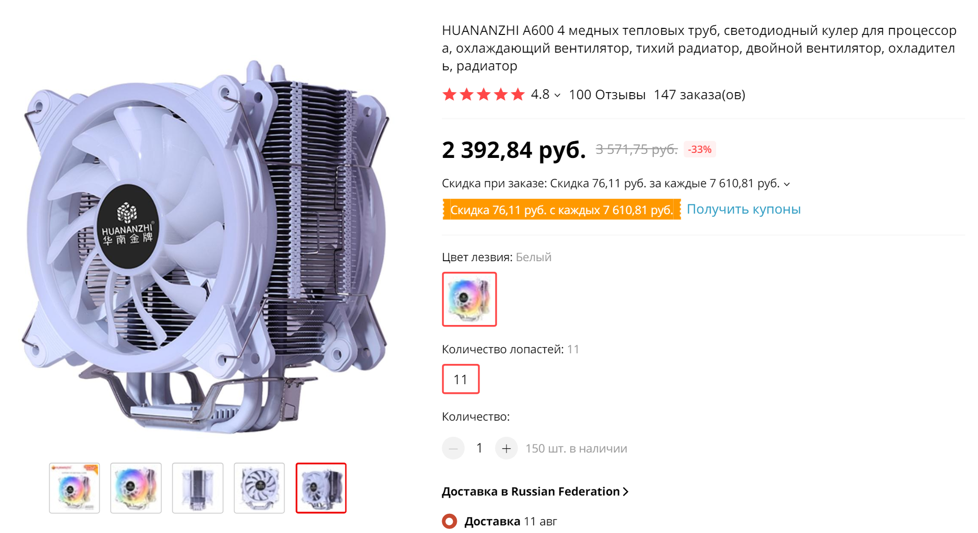В качестве ЦП-кулера мы возьмем недавно протестированный "ледяной стакан" с РГБ-подсветкой. Неофит, помни - наличие правильно подобранной подсветки снижает температуру комплектующих твоего ПК на 30-50°C и повышает разгонный потенциал ! А следовательно - и фпс в играх !