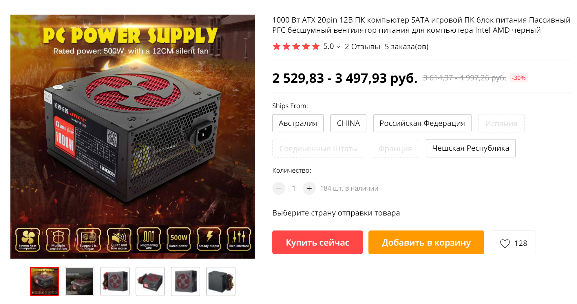 Питать нашу систему будет истинно китайский блок питания на 1000Вт (выдающий по 12В линии всего 500Вт) - но нашей системе этого хватит...