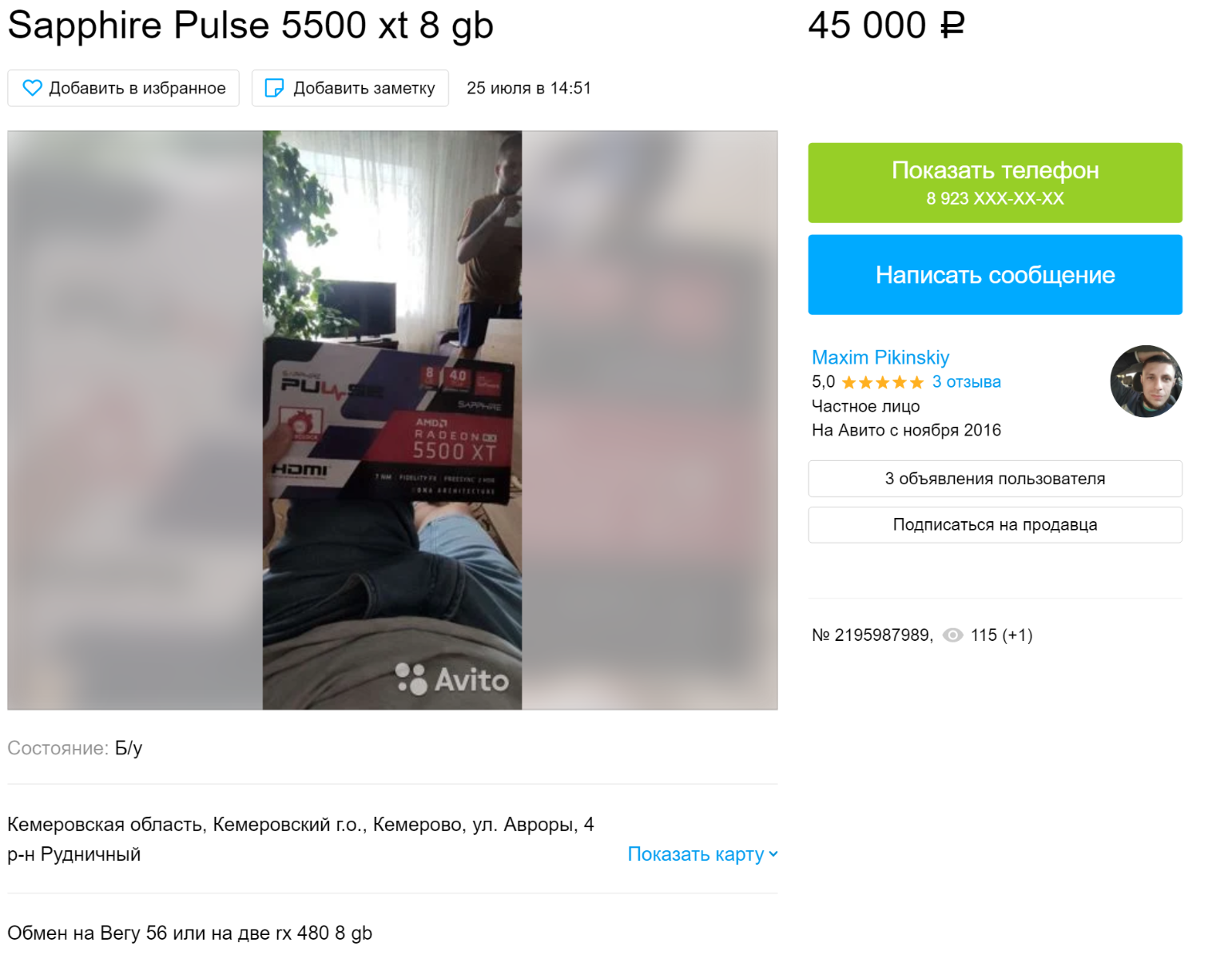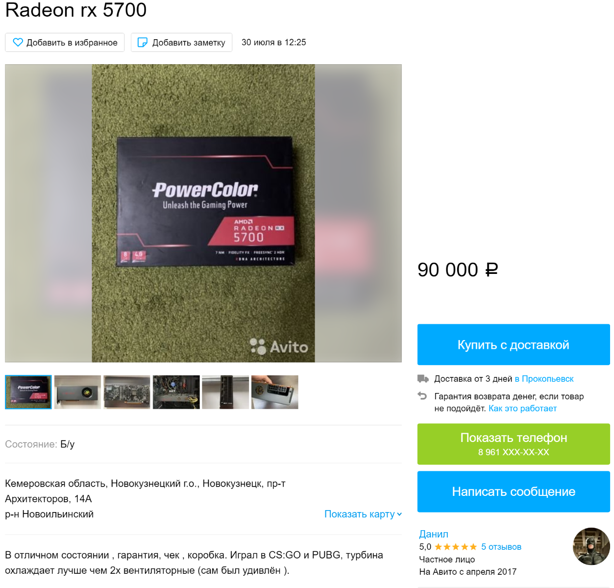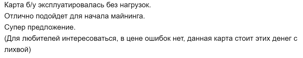Предлагать б/у видеокарту по цене новой - это достойно Премии.