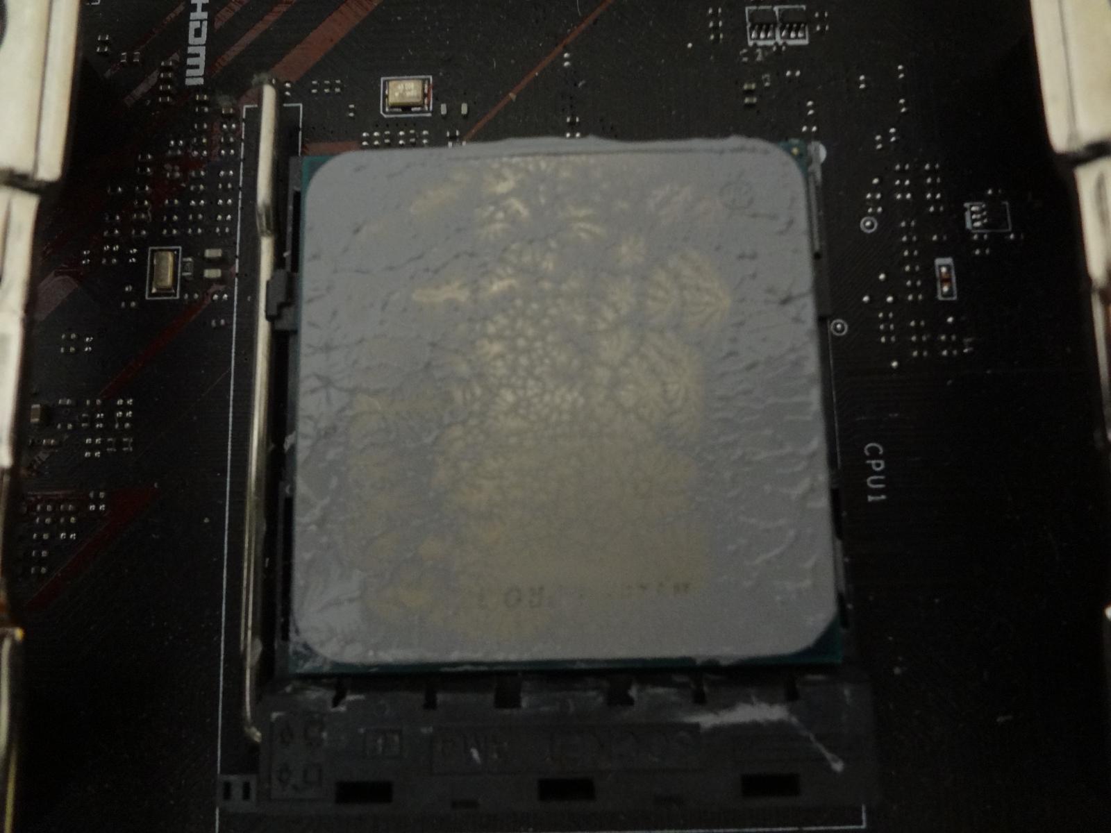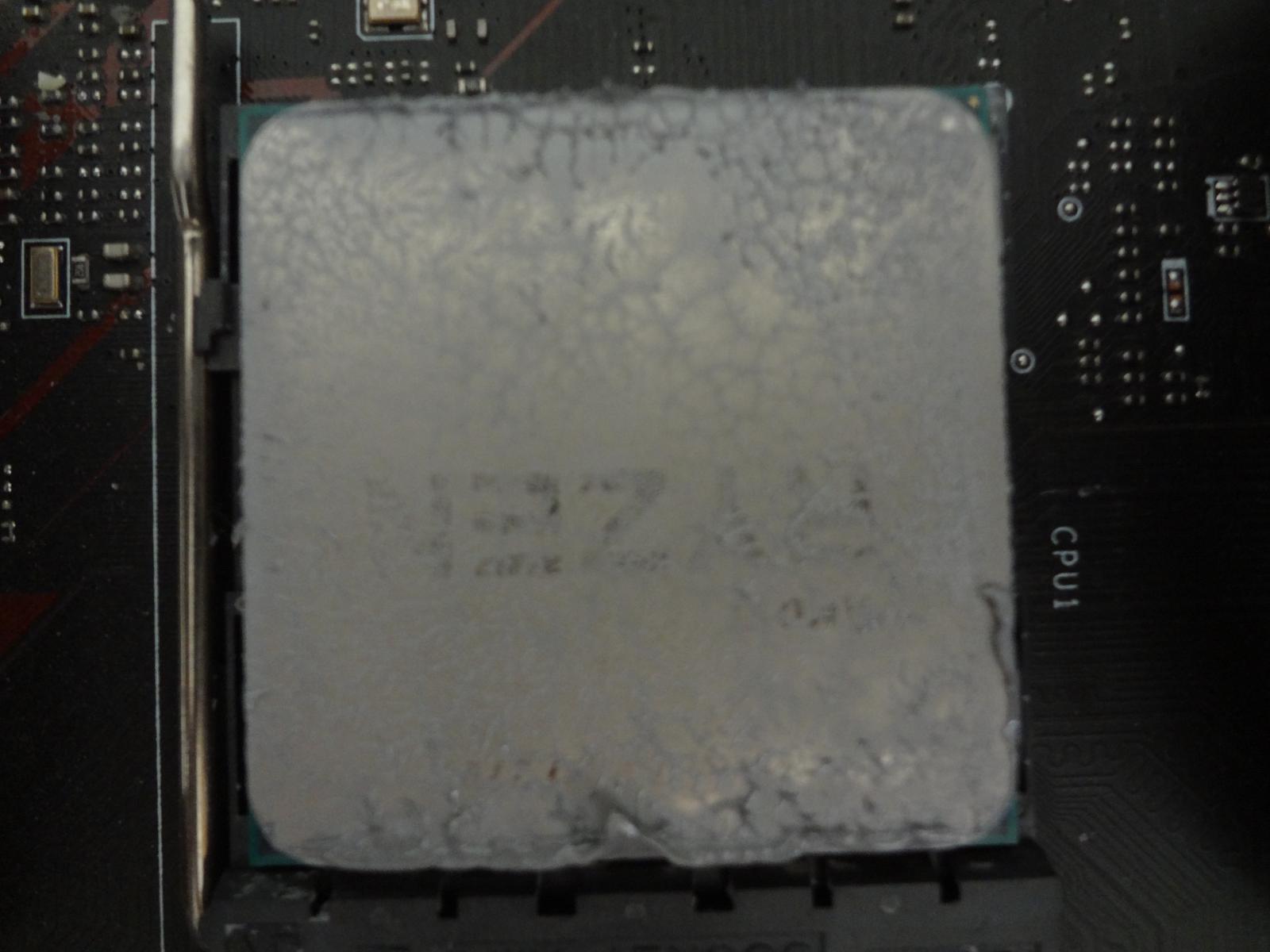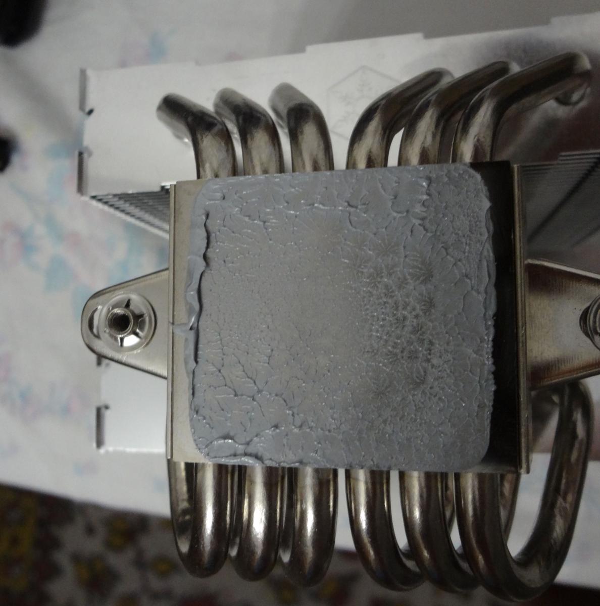 Отпечаток на основании и на процессоре - как мы видим, прижим у данного кулера весьма сильный.