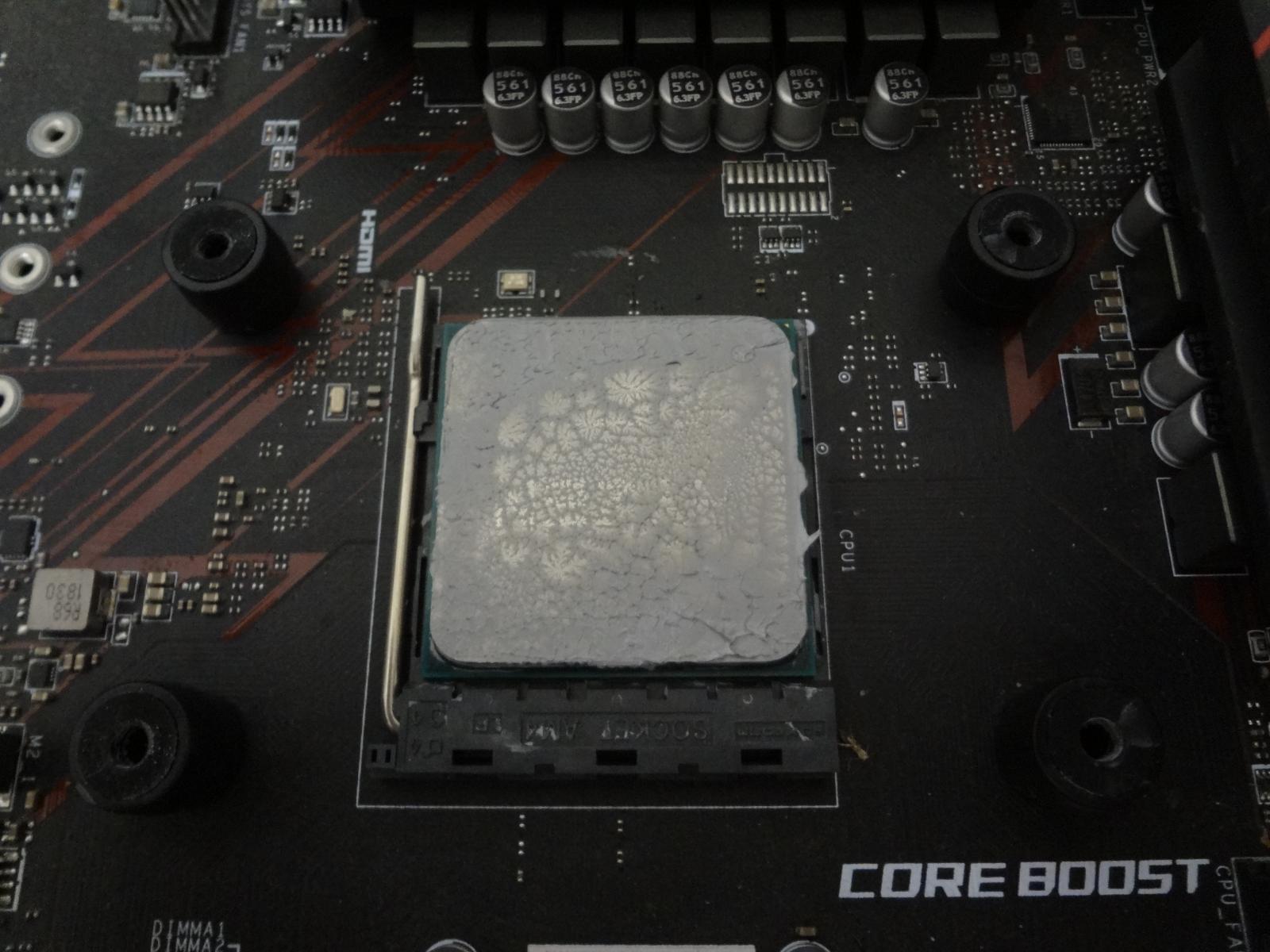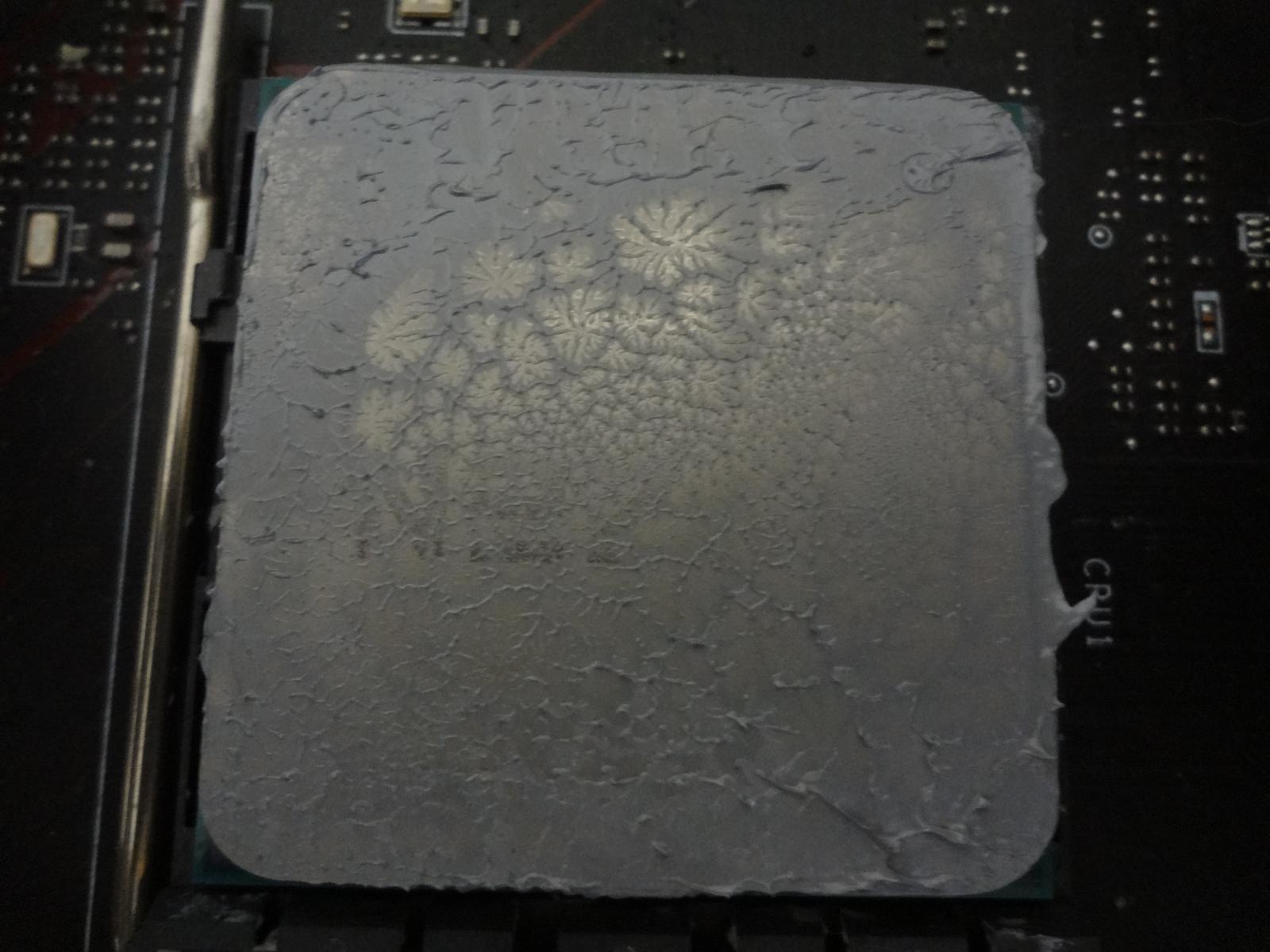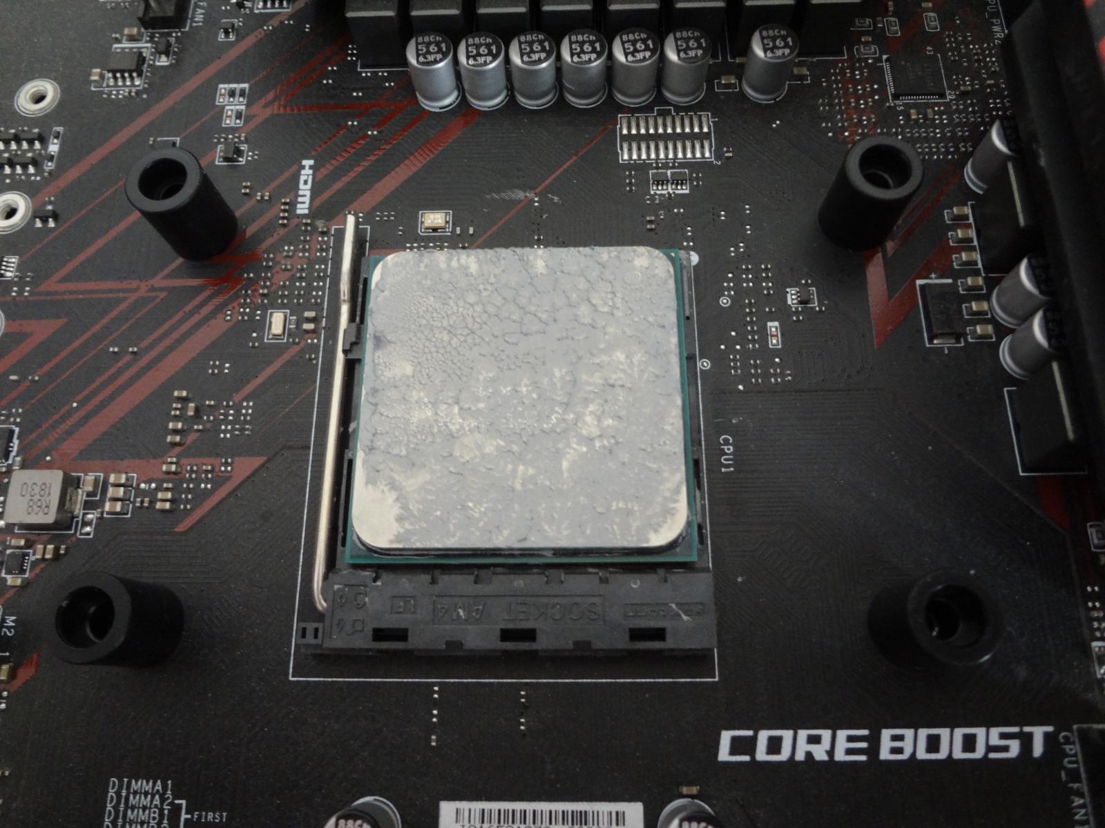 Отпечаток на основании и на процессоре - как мы видим, прижим у данного кулера весьма сильный.