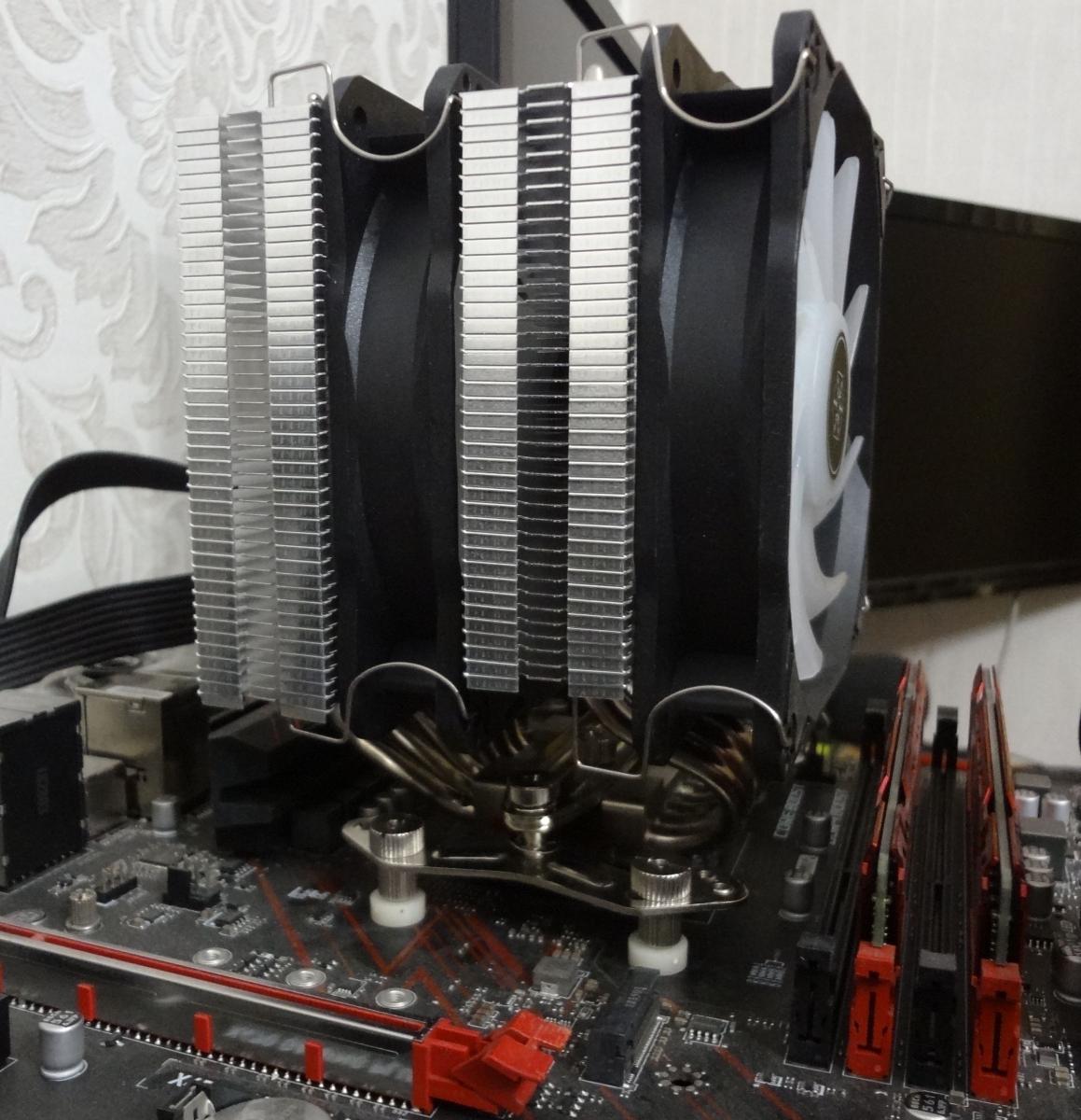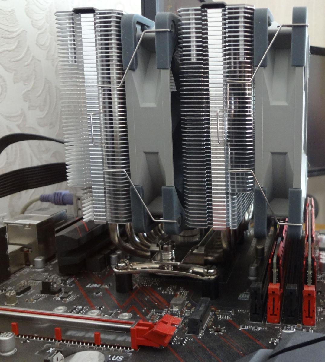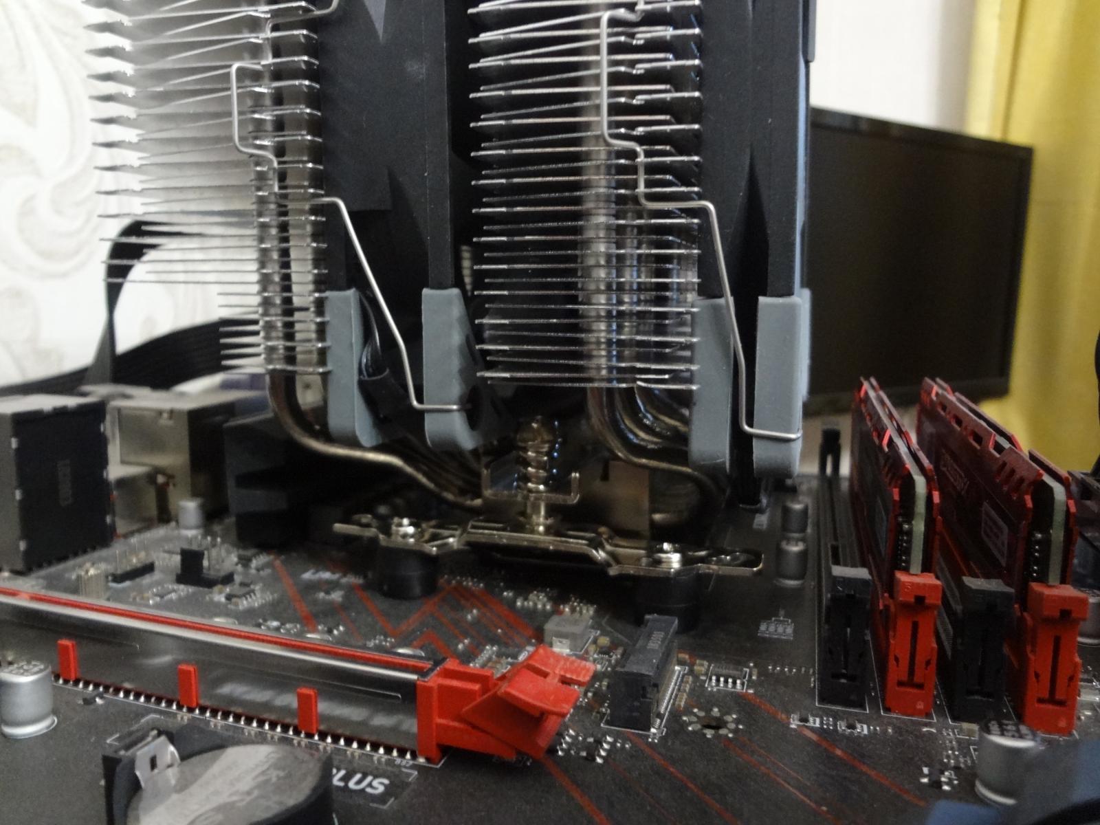 Кулер не блокирует первый слот ОЗУ даже в полностью собранном состоянии. Установка достаточно простая - для установки кулера не нужно демонтировать центральный вентилятор.