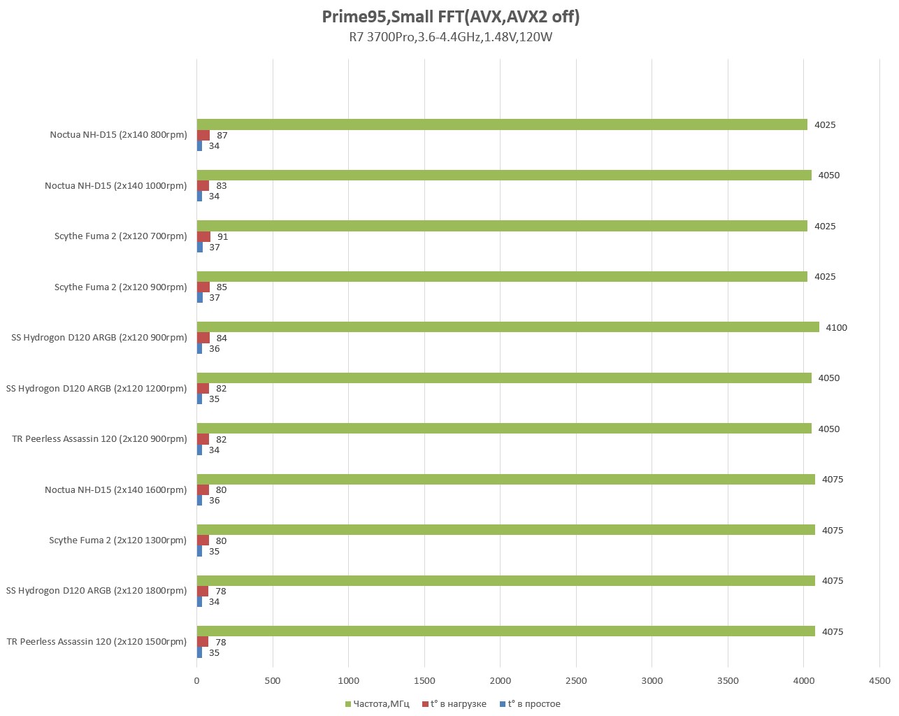 И уже в Прайме "топорно" сделанный Сильверстоун начинает удивлять. В лучшую сторону. Можно ли было бы его протестировать на более низких оборотах? В принципе да, но тогда владельцам Scythe и Noctua стало бы совсем кисло.