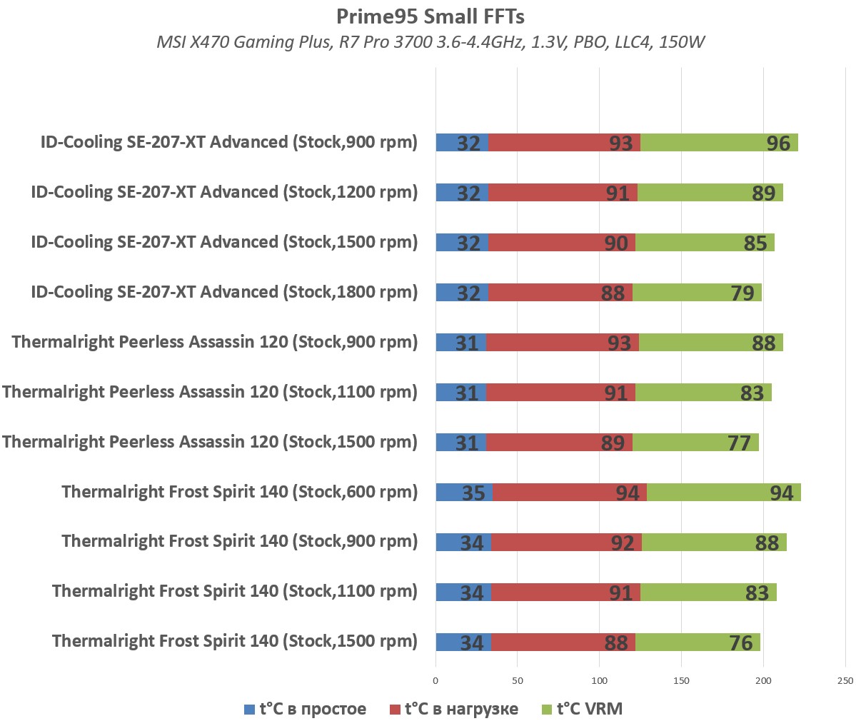 Prime95 30.5 (Small FFT,150Вт) - 20 мин прогон при максимальной нагрузке : на максимальных оборотах вентилятора и 7В (если возможно) .