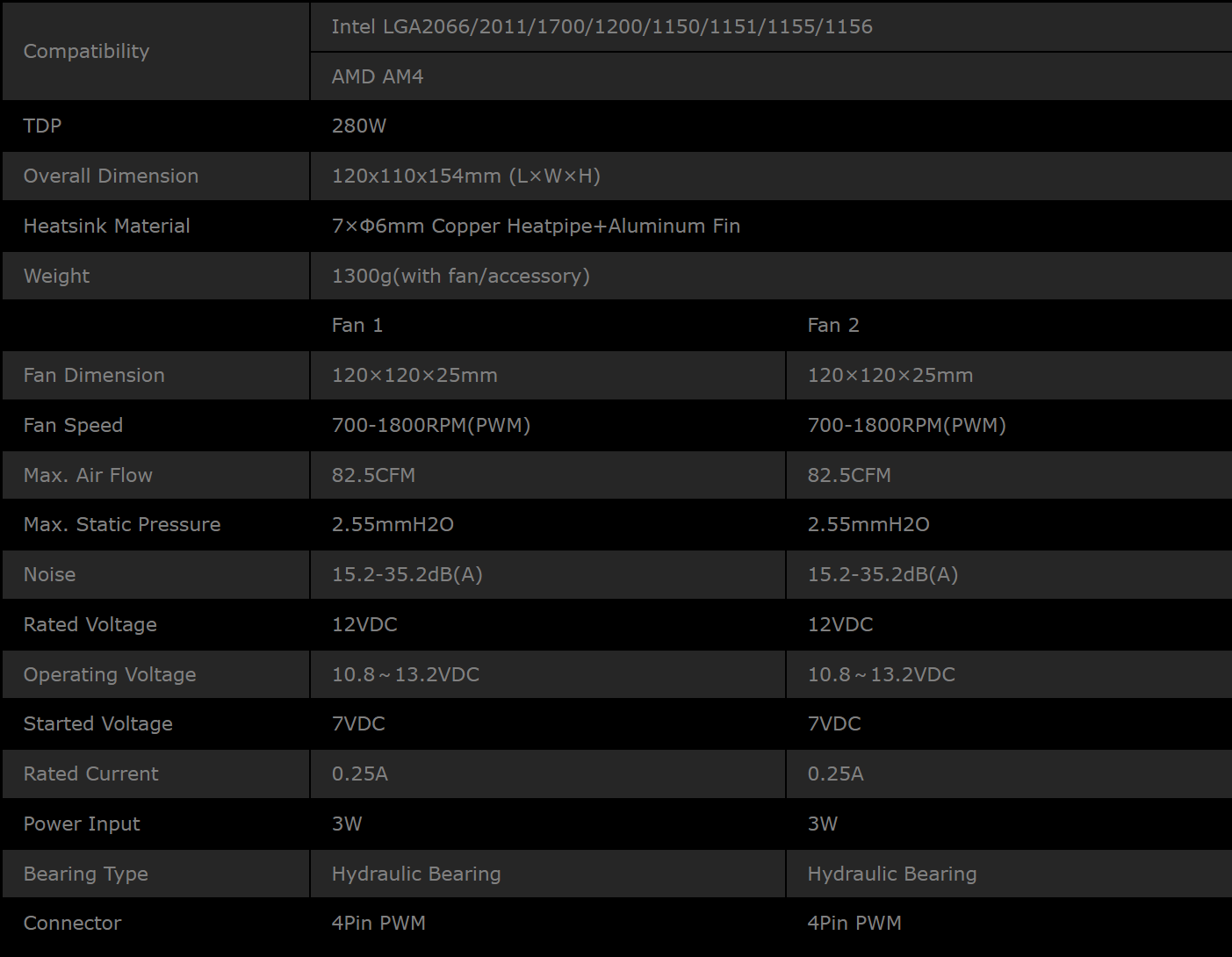 | Габариты радиатора ДхШхВ, мм | 112х116х156 | 125х135х157 | 121х140х158 |