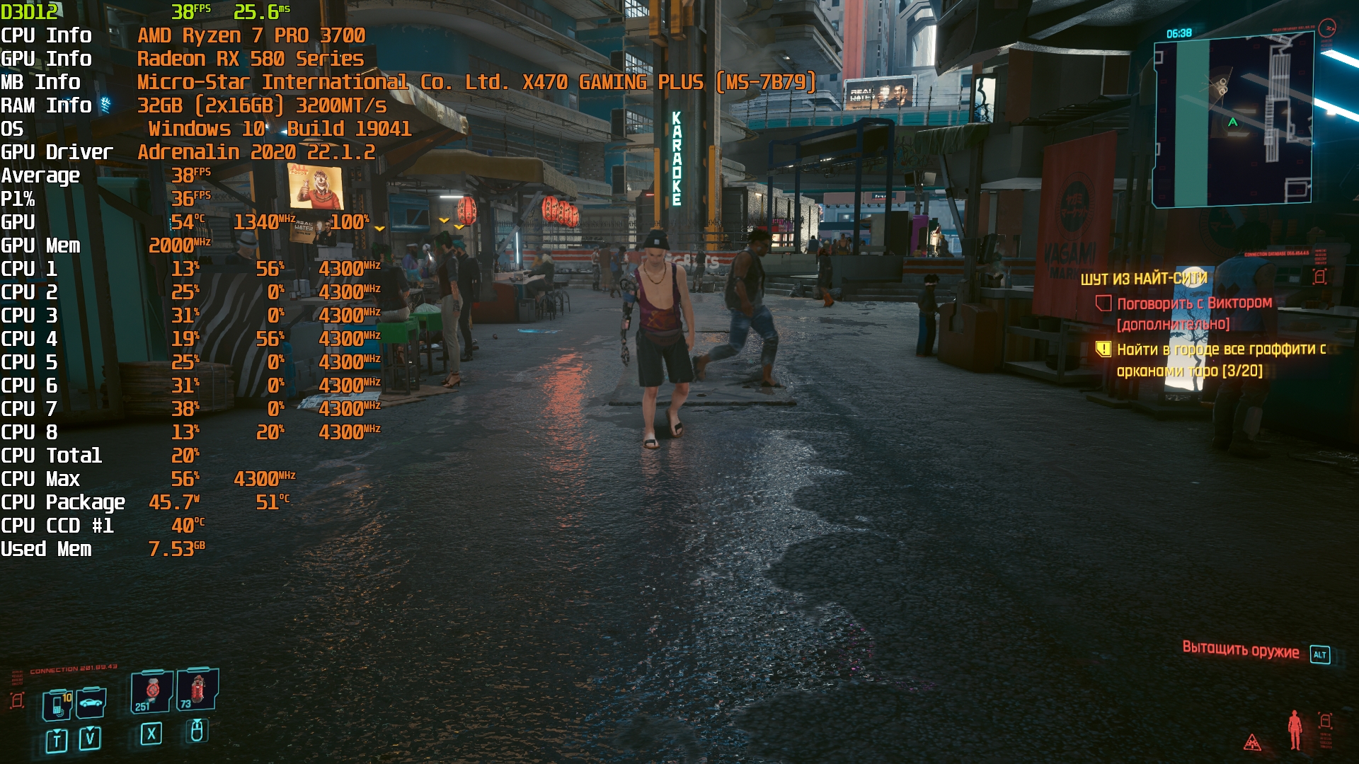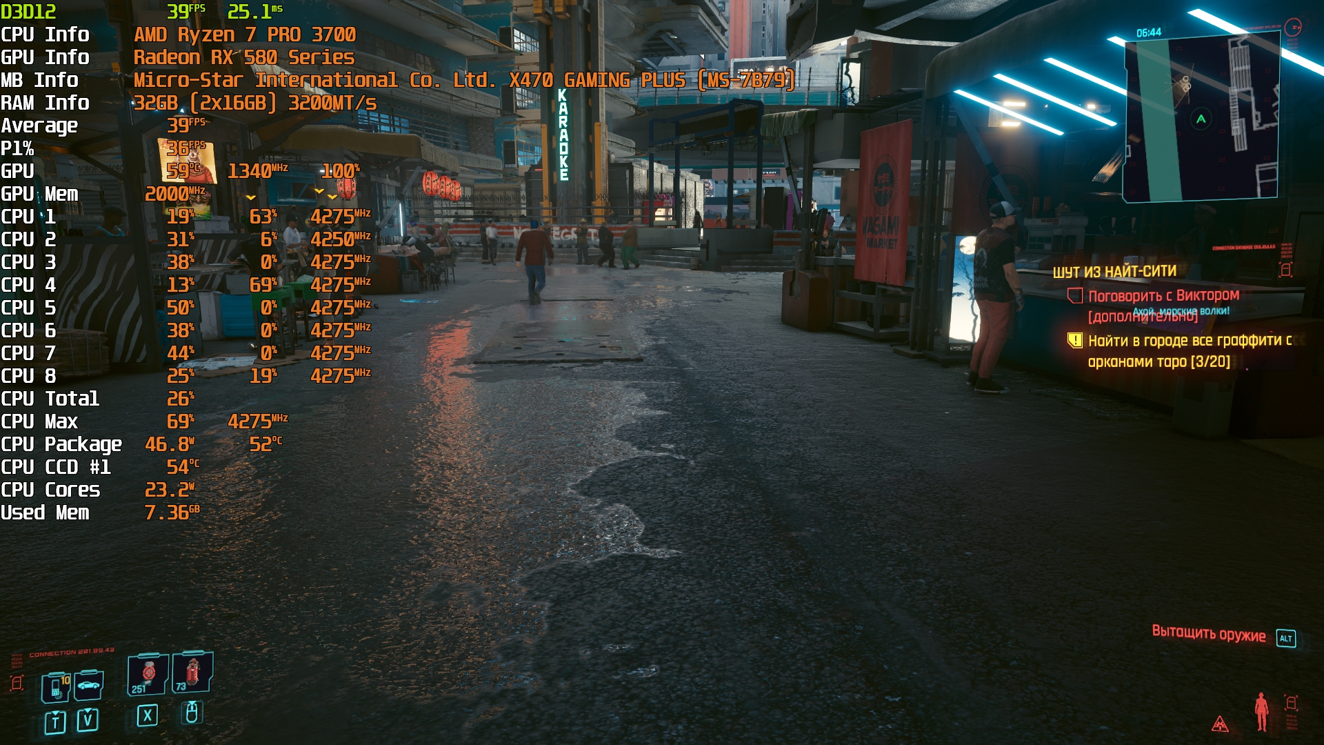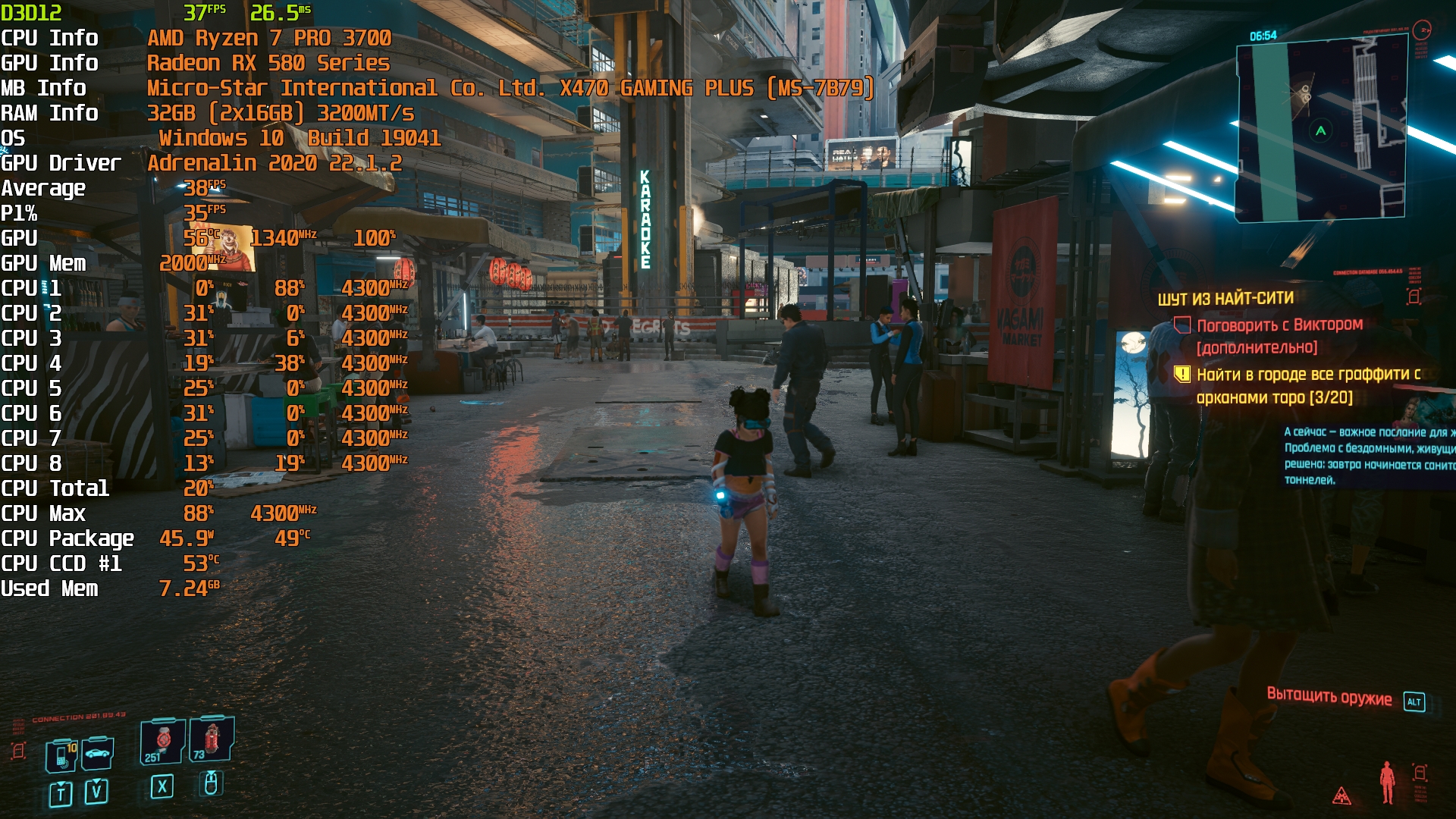 Cyberpunk 2077(GOG) - Маленький Китай, 1080р/Средние (на 900 об/мин)