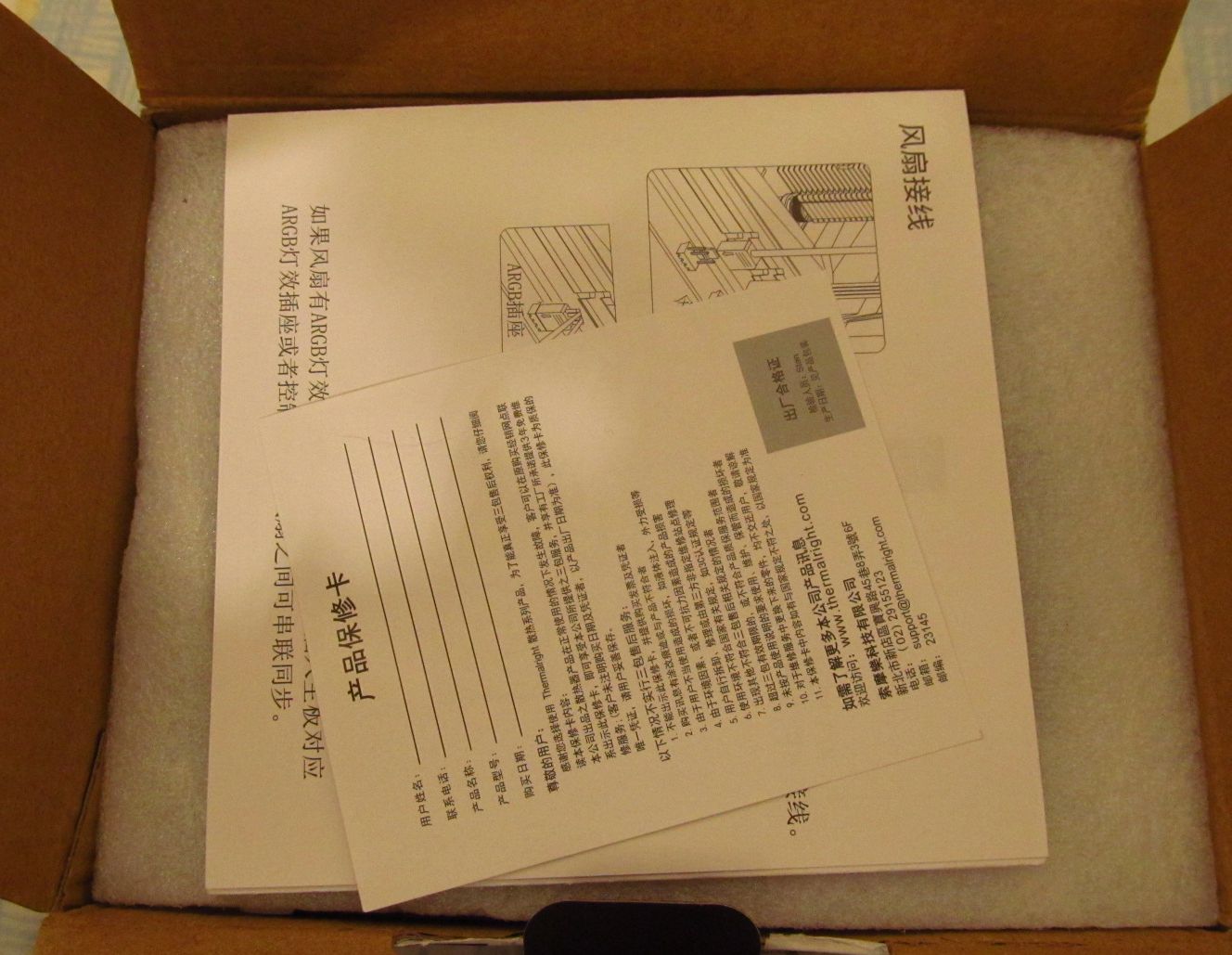 При открытии коробки нас встречают - руководство по установке, гарантийный талон и защитная прокладка из вспененного полиэтилена.