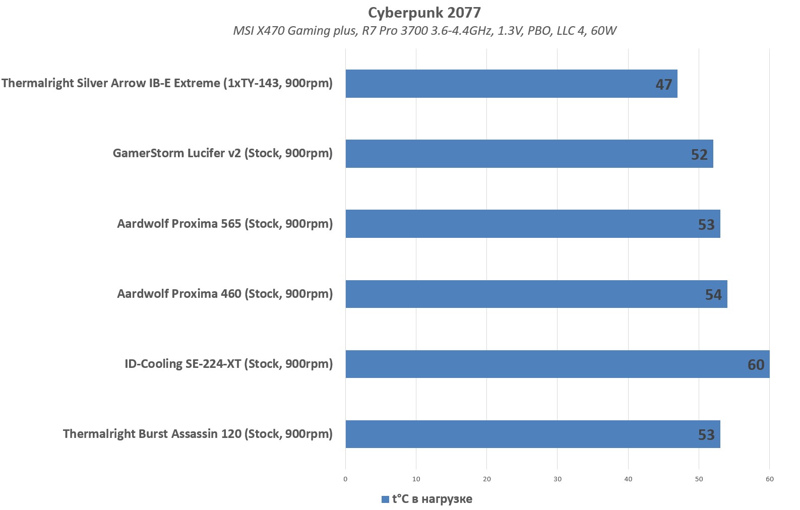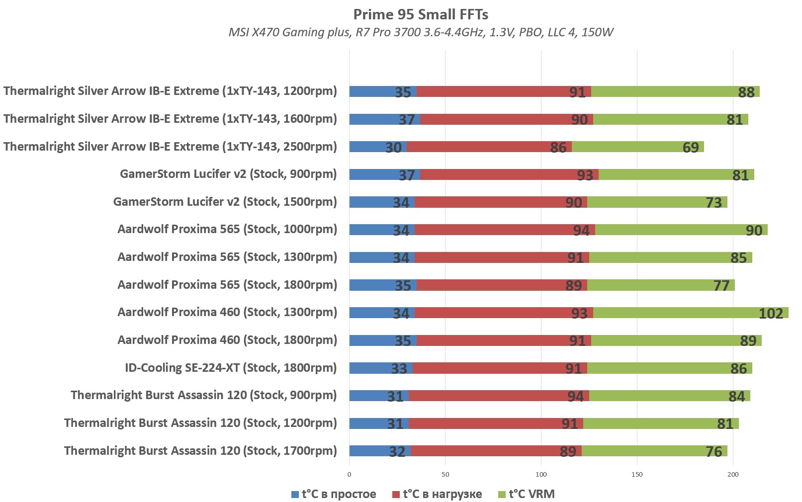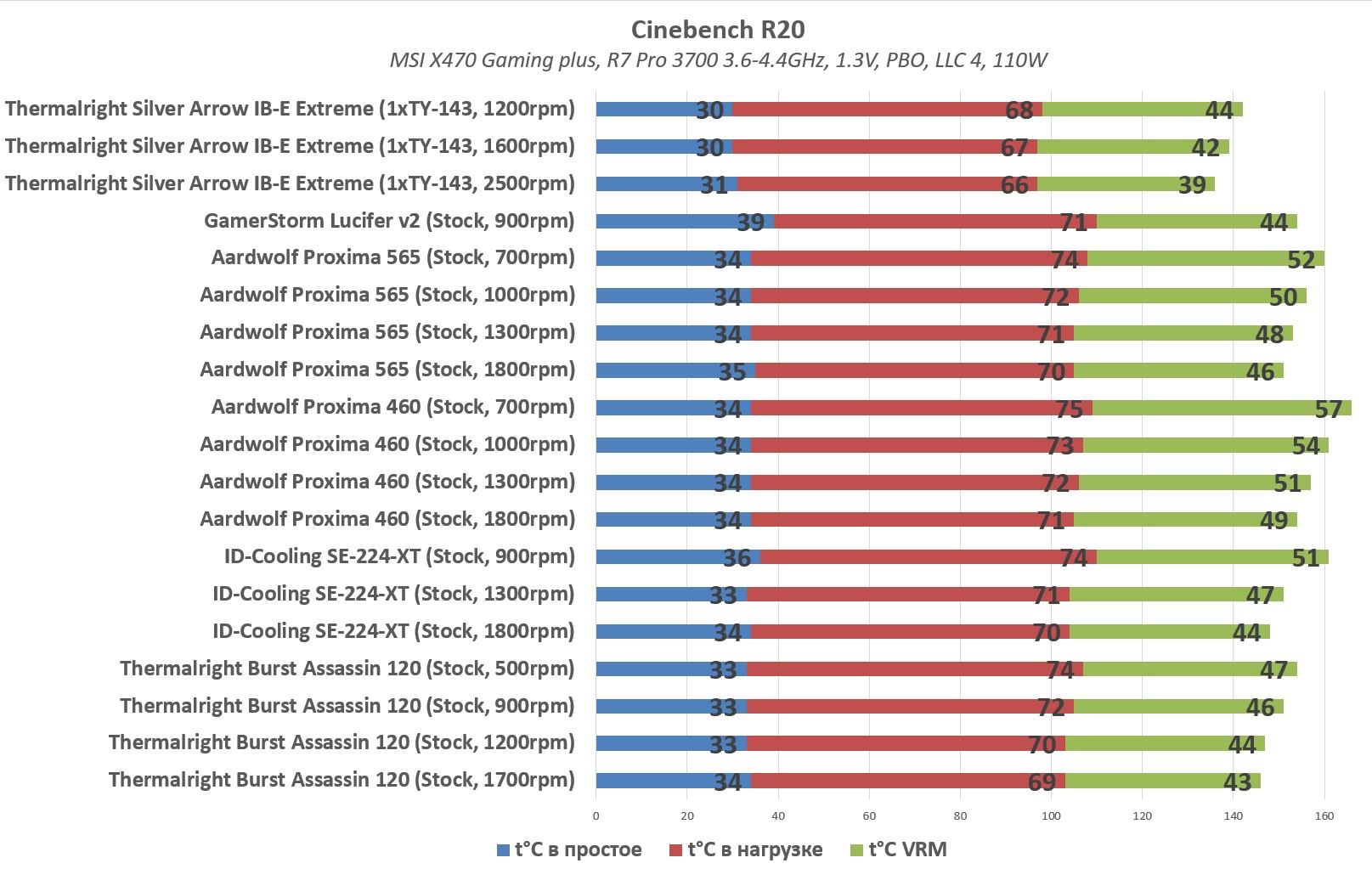 Системы охлаждения : Thermalright Burst Assassin 120, ID-Cooling SE-224-XT, Aardwolf Proxima 460, Aardwolf Proxima 565, GamerStorm Lucifer v2. В качестве "эталона" была взята Silver Arrow IB-E Extreme.