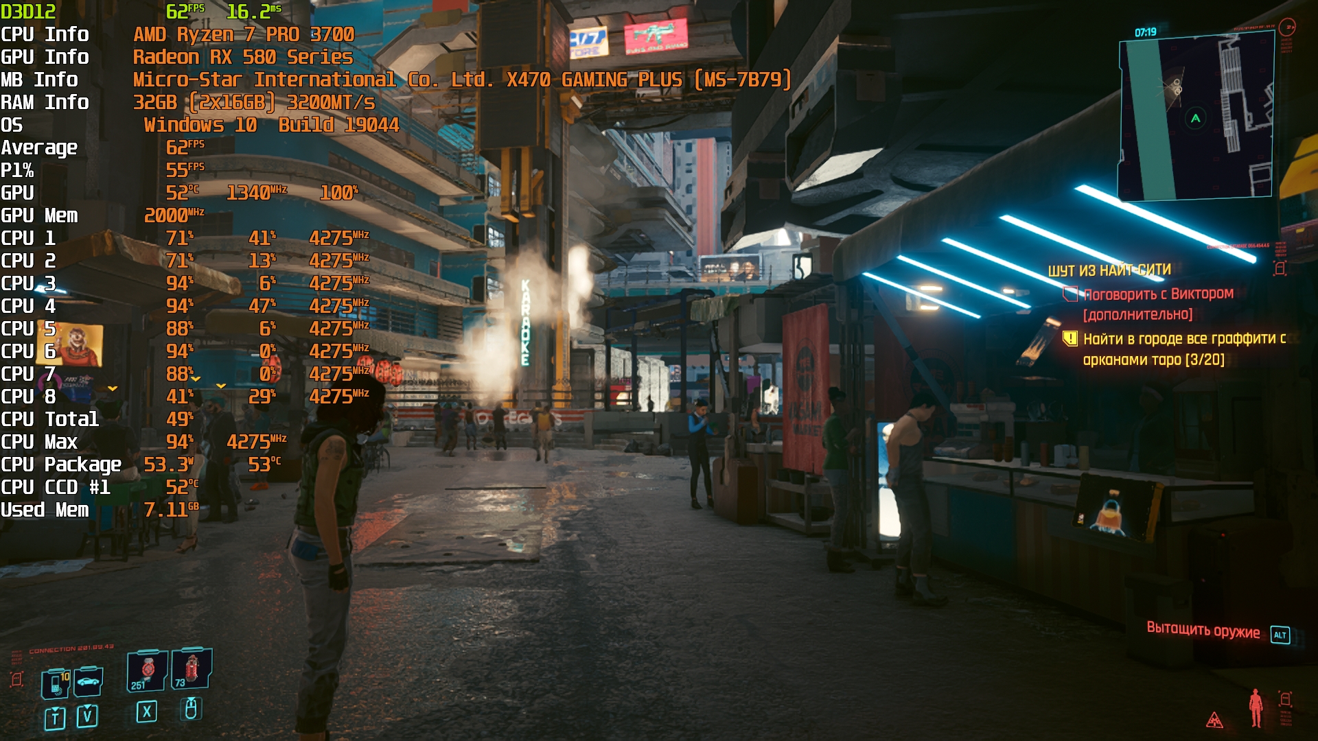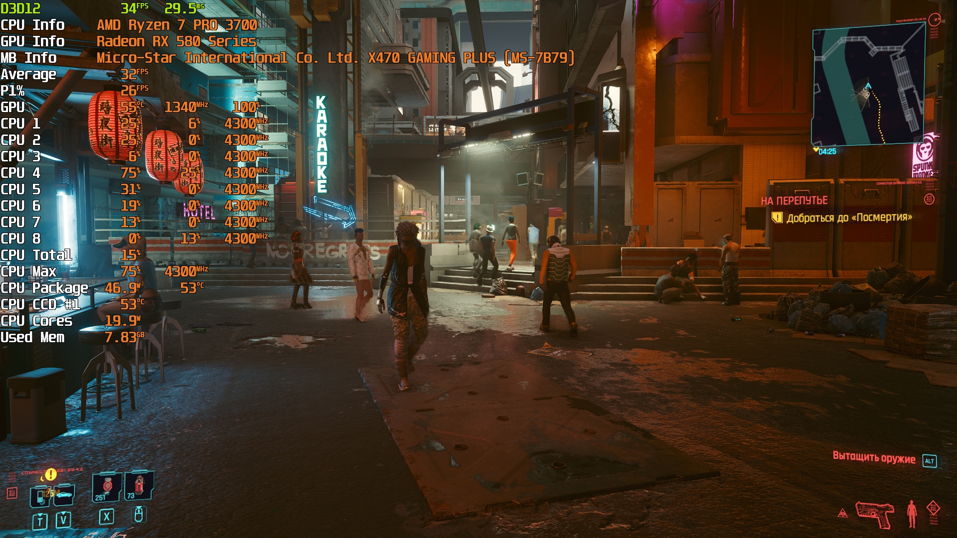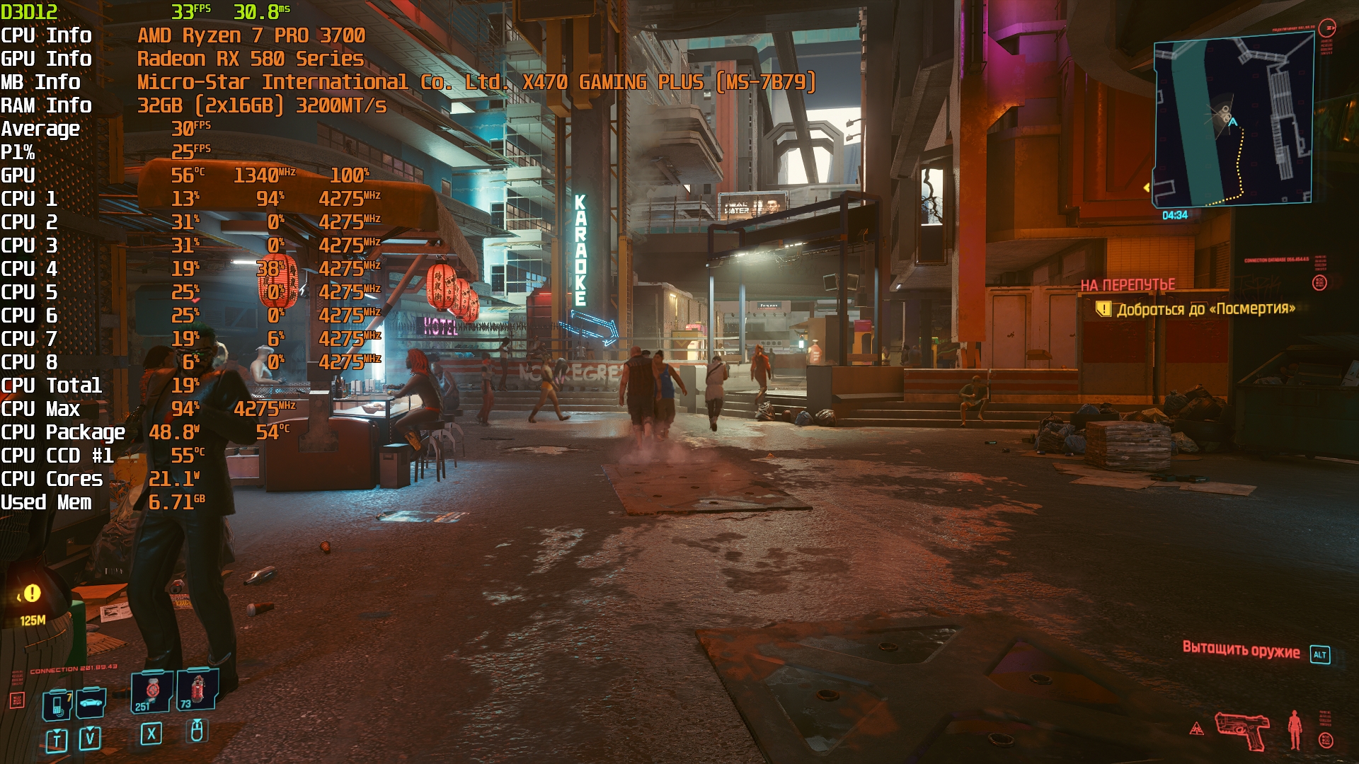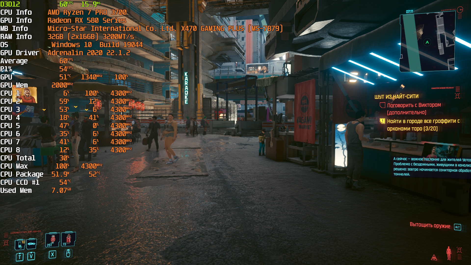 Cyberpunk 2077(GOG) - Маленький Китай, 1080р/Средние (на 900 об/мин)