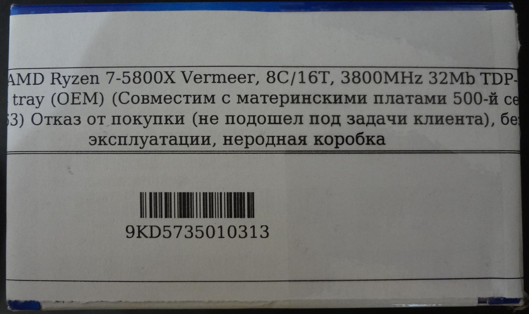 Нет, это не шутка юмора - именно в такой "неродной упаковке" я и получил заказанный Р7-5800Х. Что это - намек на то, что на самом деле Р7-5800Х - аналог i3-10100 или знак, что пора возвращаться на Интел ?