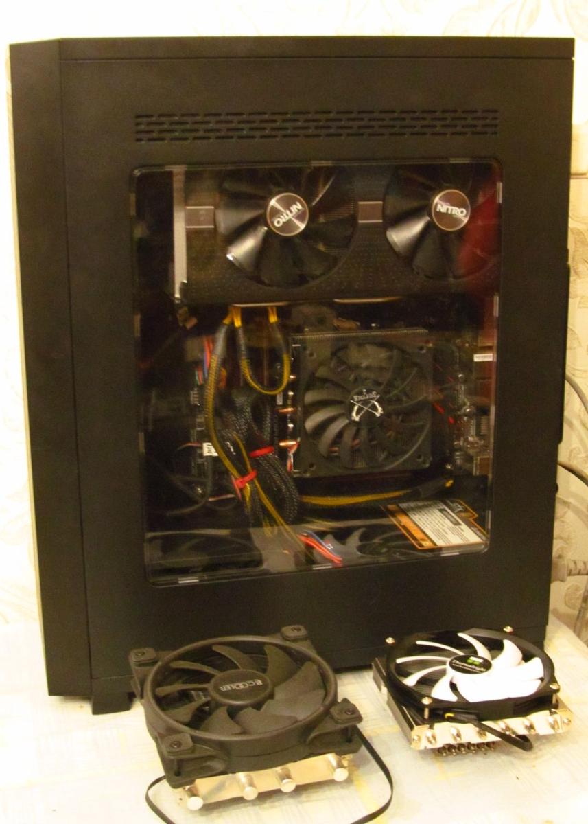 Перед вами Midi-Tower не самых маленьких размеров ( и не самого выдающегося дизайна), но зато позволяющий установить в себя пару толстых радиаторов на 360мм (если у вас есть такая необходимость) или три (а при желании и наличии рук) даже четыре вентилятора размером 200мм (если вы не любите жидкостное охлаждение). Корпус 2016г, но несмотря на это, перед вами один из лучших холодильников для горячих систем. Корпус легкий - всего-лишь 10кг. Даже сейчас его можно найти в продаже :