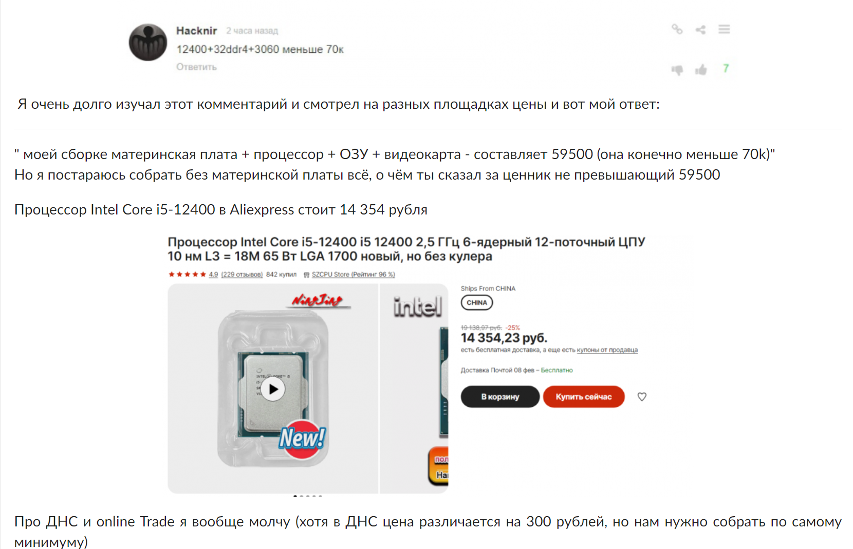 Как видите - и в России можно дешево собирать, если "клювом не щелкать". И некоторым комментаторам стоит помнить, что большинство собирает ПК "для поиграть", а не для того, чтобы жыпегами в комментариях мериться. А для этого в качестве основы вполне сгодится и предыдущий сокет Интел.