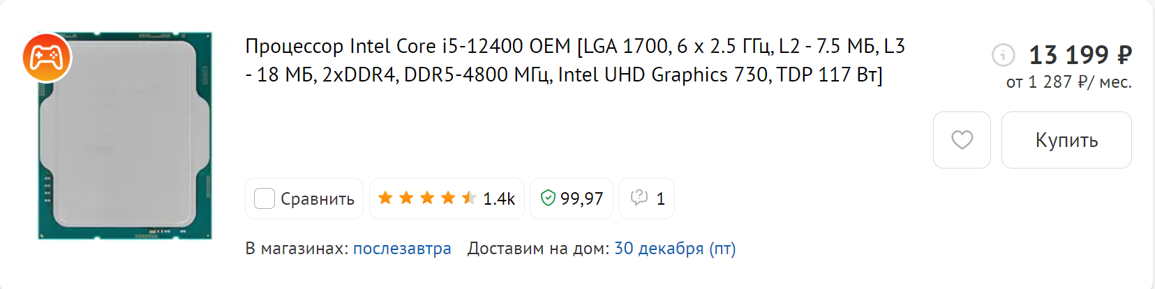 Процессор : - i5-10400. На Авито можно найти даже новым за 7000-8000 рублей(главное успеть забрать его первым!) К слову недавно в моем городе распродали партию 10400f по цене 7200р за штуку! Уходили ка горячие пирожки!