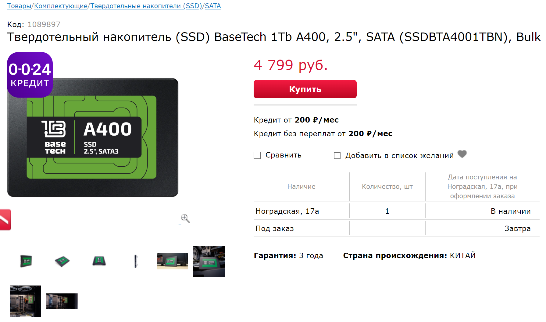 Да, это Кингстон А400 - 4800р за 1Тб. Самое оно под игры.