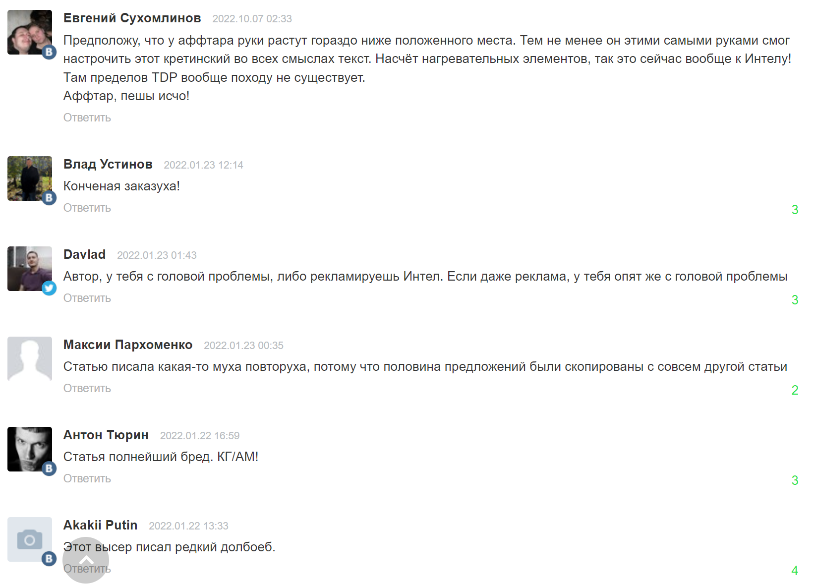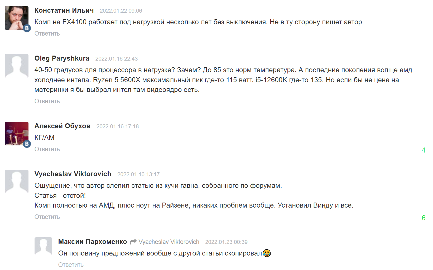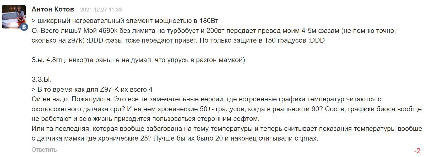 Из данных комментариев уже можно сделать вывод об уровне знаний как про процессоры, так и про системы охлаждения у данных индивидов.