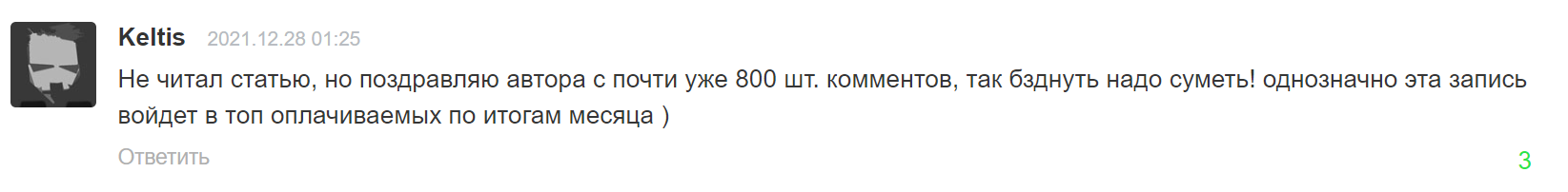 Если бы ты знал, СКОЛЬКО фэйспалмов я словил, глядя на то, как растет счетчик просмотров...Хотя вроде просто поделился своими впечатлениями... А сделаешь обзор на новинку системы охлаждения - не более 3-4 тыс. просмотров. За квартал. А тут за 2 дня - 200к просмотров. "Это техно-портал! Нам нужны техно-статьи!" Звездеж и провокация. Срач им нужен и ничего больше. Но кто же в этом сознается...