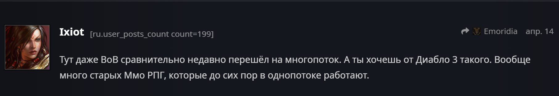 Недавно - это еще в 2016-17гг - то есть 7 лет назад. Я тогда на спор побегал в ВоВ-ке на своем древнем 4790К+GTX970( система в 1440р на Очень высоких настройках (не помню точно какого уровня - то ли 11, то ли 12) выдавала 140+ фпс). Уже тогда ВоВ грузил в среднем 2-4 потока (но это так, на правах оффтопа).