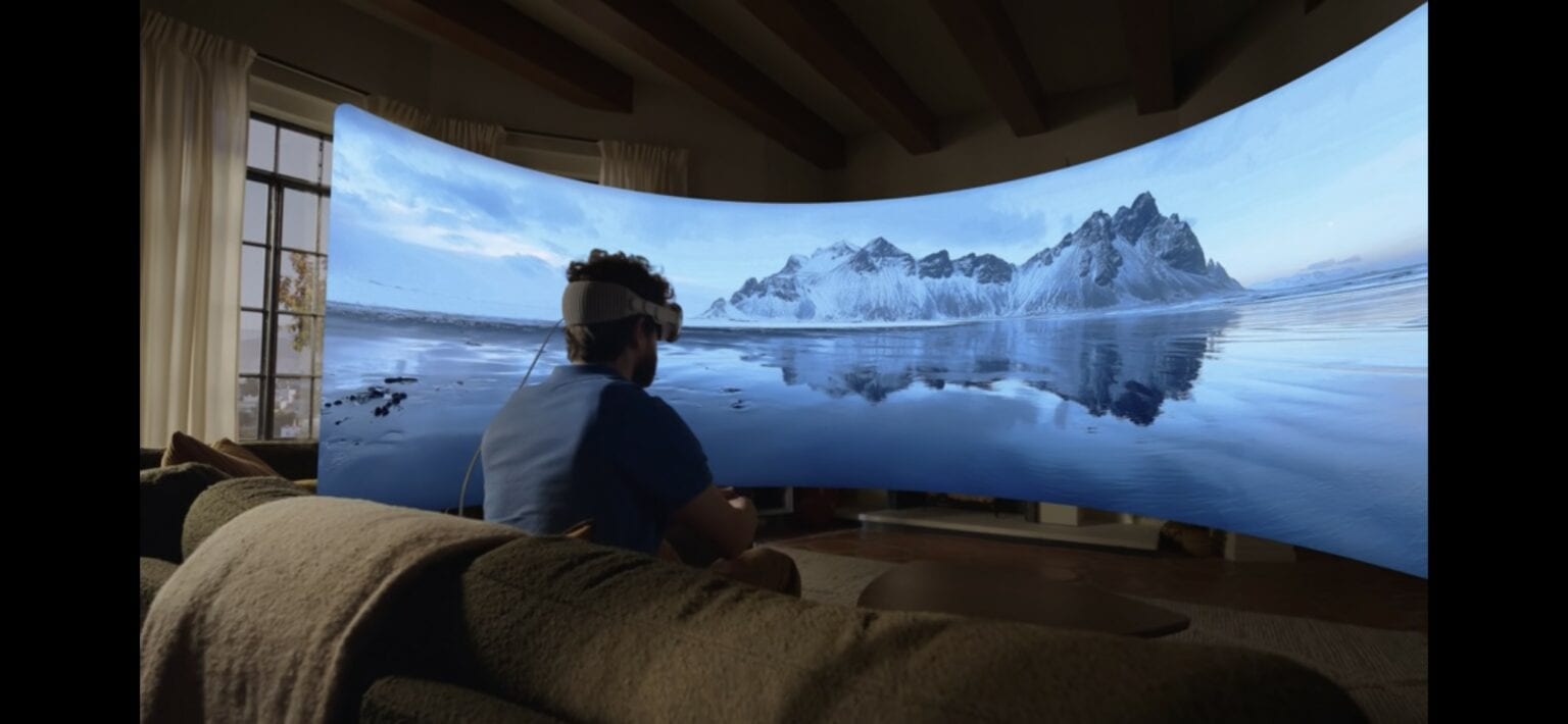Лично меня, удивила возможность просмотра фильмов и видео, в гарнитуру лаконично встроили колесико от Apple watch, при повороте, фон затемняется и меняется на прекрасные пейзажи.