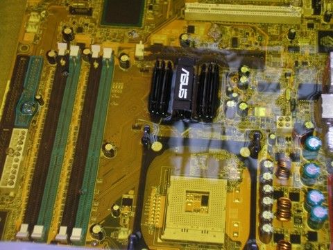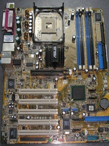 Следующий пункт подготовки эксперимента – выбор материнской платы. С этим вопрос обстоял проще – покопавшись в недрах сервис-центра, мы нашли массу интересных экземпляров. Но поскольку наш эксперимент носит сугубо познавательный, а не сравнительный характер- то и выбор сделать было весьма несложно. Критерий отбора – наибольшая распространенность плат схожего типа, а посему мы выбрали то, что продаем много и с удовольствием – ASUS, модель P4P800-E Deluxe.