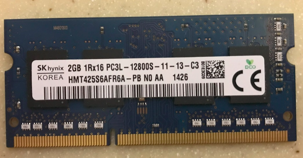 - Оперативная память: одна плашка от Hynix HMT425S6AFR6A на 2 ГБ, и 4 ГБ распаяно на плате - итого 6 ГБ;