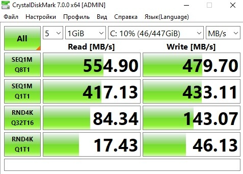 То есть, в действительности, получаем даже чуть более лучшие показатели. Но не стоит впечатляться, вроде, большинство техноблогеров, говорят, мол, в данной модели ССД есть шероховатости в работе буфера обмена и микроконтроллера от Phison... Но это уже другая тема, в которую углубляться не станем. Главное, в общем плане, есть значительный прирост.