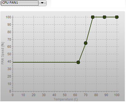 График работы построен так, что при стресс-тесте вентилятор всегда будет на максимуме, а в простое на значении около 40%.