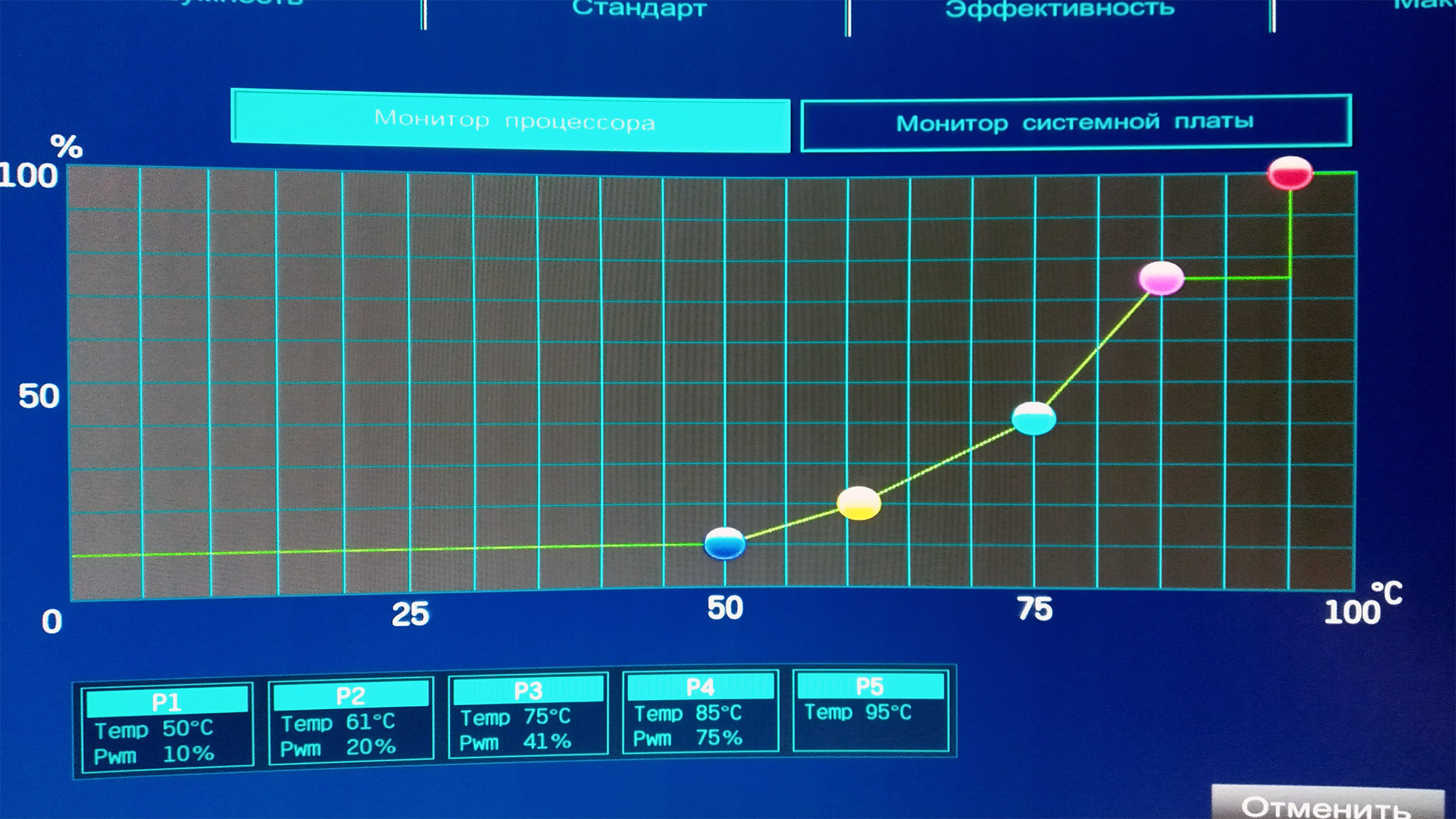 Подключенный к мат.плате вентилятор имеет следующую температурную кривую: