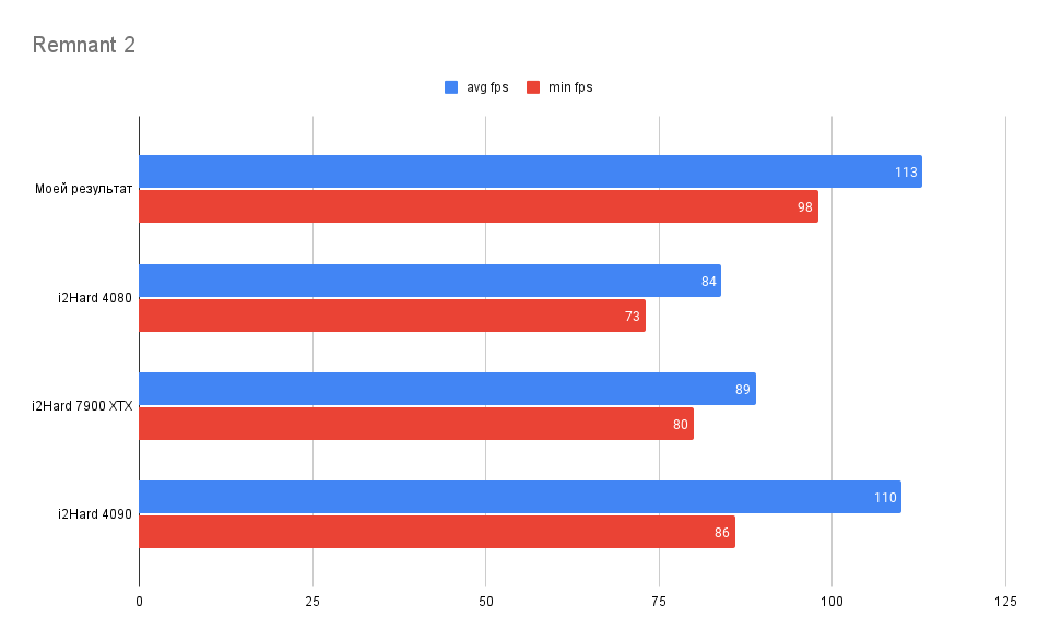 Тут снова с i2Hard сравнивать будем т.к. у них опять странные результаты. Игра на UE5, RDNA3 довольно неплохо себя чувствует в играх на этом движке. Большинство других ресурсов показывает, что 7900ХТХ тут очень близко к 4090, а у i2Hard, ВНЕЗАПНО, очень близко к 4080 оказалась. Да, тут в моем пробеге погода немного отличается или может просто у них в тесте картинка настолько зашакалена, что не понять, но я не думаю, что другая погода как-то значительно повлияет на фпс.