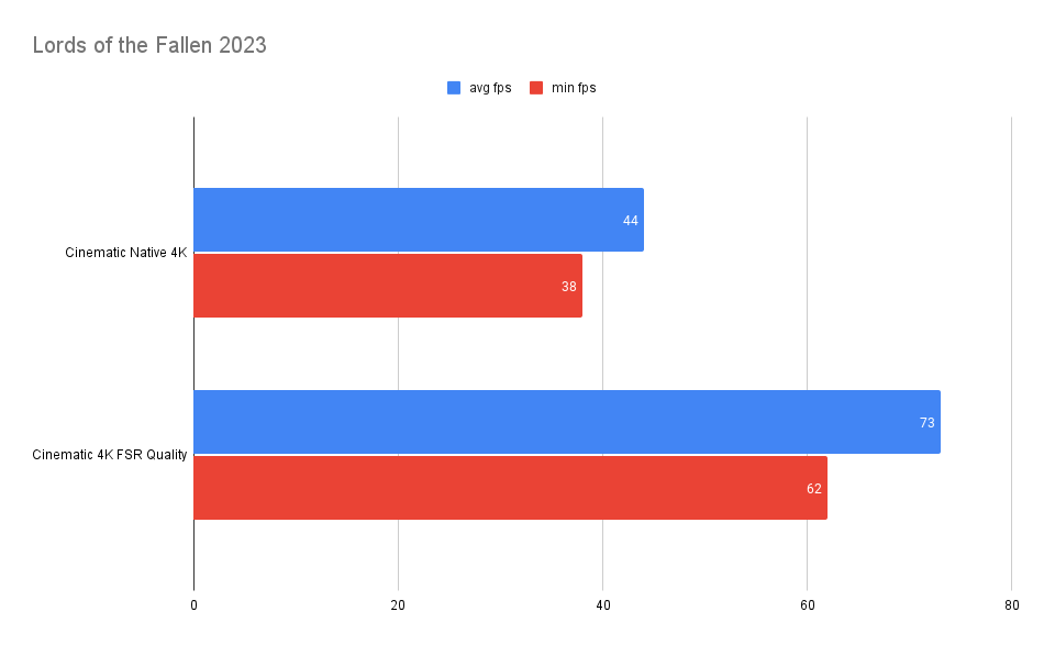 Ну и эту игру на форуме с народом уже бенчили, правда на других настройках, но в тех забегах тоже была видна тенденция, что в играх на UE5 7900ХТХ гораздо ближе к 4090, чем к 4080.