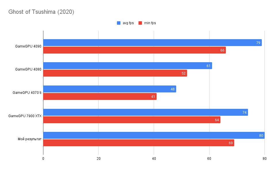 - Разница с RTX 4080 от GameGPU = 31,15 %;