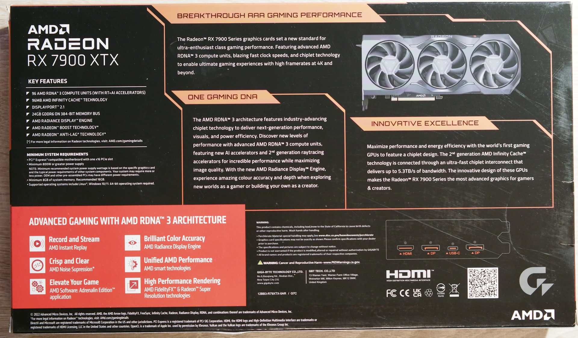 Видеокарта RX 7900 XTX референсного дизайна от GIgabyte выглядит так.