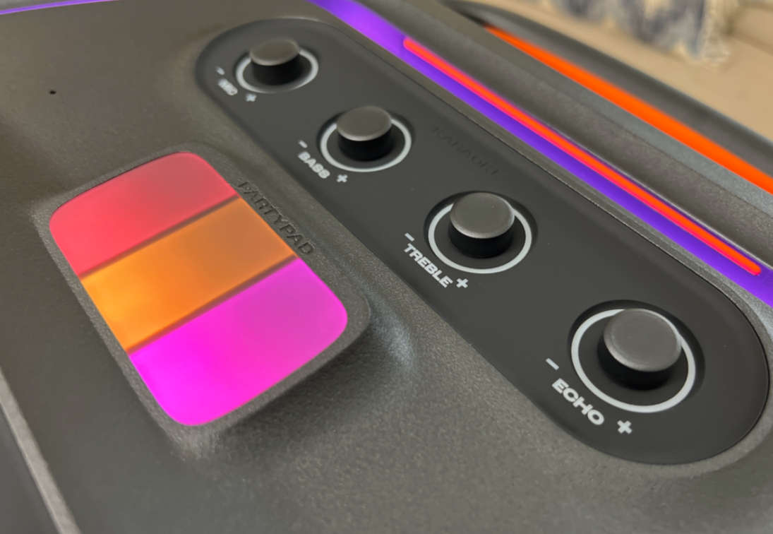 JBL PartyBox Ultimate выделяется своей звуковой мощностью и производительностью. Когда её включают, знакомый сигнал JBL становится таким мощным, что может вызывать вибрацию в доме. Эта колонка способна воспроизводить звук с такой громкостью, что напоминает клубную атмосферу или шумное свадебное торжество. Даже при уровне громкости менее 40%, она способна заставить стены дрожать, а это без использования функции усиления басов.