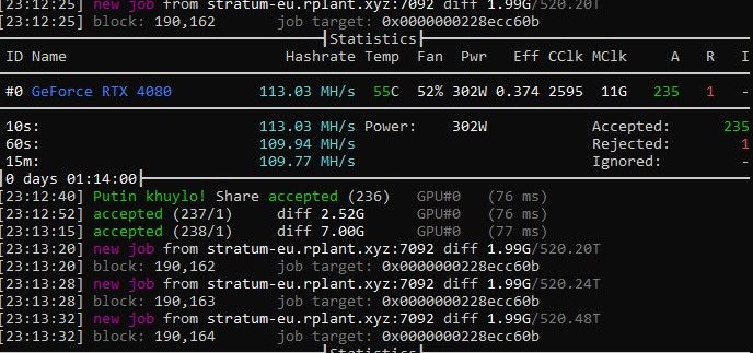 С популярными алгоритмами разобрались. Но сейчас на картах я майню монету Nexa и хешрейт впечатляет. Он равен 110 MH\s.