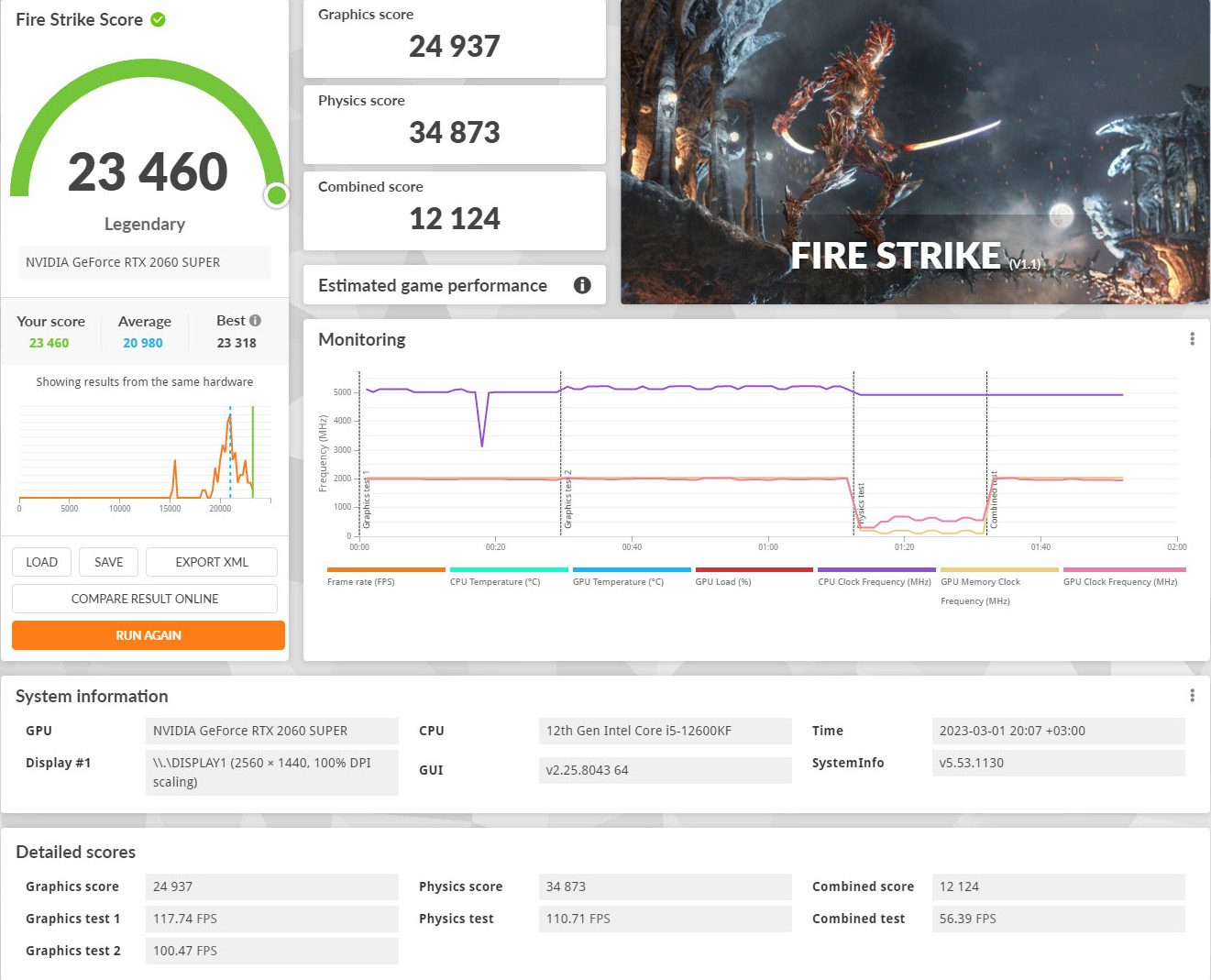 Все попавшие ко мне карты стараюсь настроить до состояния Legendary в 3DMark, а то и в Топ 100. Так что руки у меня из одного, но правильного места. Legendary означает, что результат входит в 1% лучших для подобного железа. В стоковом состоянии в 3DMark Fire Strike количество попугаев в Graphics score выросло до 35 тысяч, против 25 тысяч у моей 2060 Super.