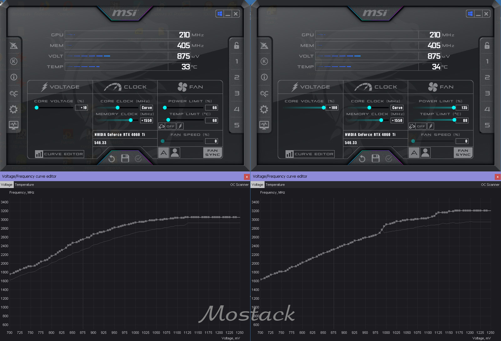 У карт есть неочевидный плюс: можно снизить лимиты потребления на 20-30% и поднять частоты до штатных значений. Такое прокатило с китайской MLLSE RTX 2060 Super и то же самое работает с вот этой вот 4060ti. И это намного более грамотное решение, чем "андервольтинг", который вместо фиксации потребления фиксирует напряжение. Если интересно - могу написать про андервольтинг подробнее с примерами, которые рушат всю эту схему.