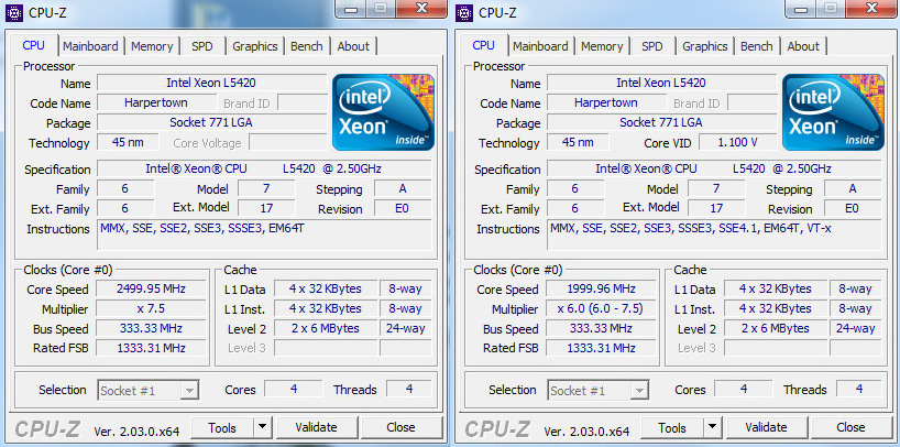 - Xeon L5420 за 700 рублей: 4 ядра, 50Вт против 65Вт штатного E5400 и производительностью минимум вдвое. SSE4.1 и штатная установка Windows 10. Шина 333МГц и заметно возросшая скорость памяти.