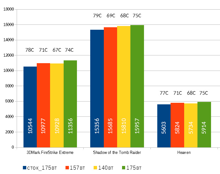 В общем потратив 2-3 тысячи на всякие глупости есть неплохой шанс, что комфортные 66-67 градусов сохранятся при лимите 150Вт и это даст еще 15-30 МГц. Смысл в плане увеличения производительности отсутствует напрочь, результат вряд ли будет вылезать из погрешности измерений, да на идеально чистой системе. Запущенный браузер, антивирус, подключение к инету, утилитки всякие (которые никто не закрывает и не перезагружает компьютер перед игрой) в реальной жизни сбивают производительность намного сильнее.