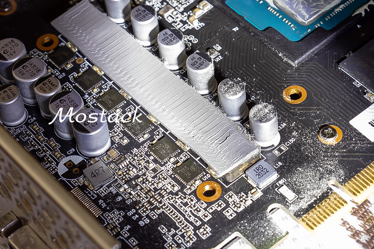 Заменил одну термопрокладку на VRM тоже на Arctic, толщина 1 мм. На памяти и кое-где еще стоят 2 мм - таких у меня не было. Старую прокладку разрезал, сложил втрое и засунул под бэкплейт над тем же VRM (там надо 3 мм). Бэкплейт стал ощутимо горячее.