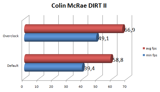 Ну вот, хоть какое то изменение, 20% по максимальному количеству кадров и 24% по минимальному! Хороший прирост, но думаю, в этот успех внёс больший вклад процессор, разогнанный на 20% относительно номинала.