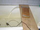После остывания контур был собран в виде "ванна как расширительный бачок" - помпа - радиатор. Трехчасовое тестирование показало отсутствие протечек. Значит, припой хорошо зашел медлу трубкой и штуцером, повинуясь эффекту капиллярности