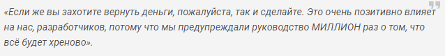 Если у Вас есть желание вернуть деньги за игру - воспользуйтесь этой возможность, анонимный разработчик говорит, что это действительно может повлиять на руководство CD Projekt Red.