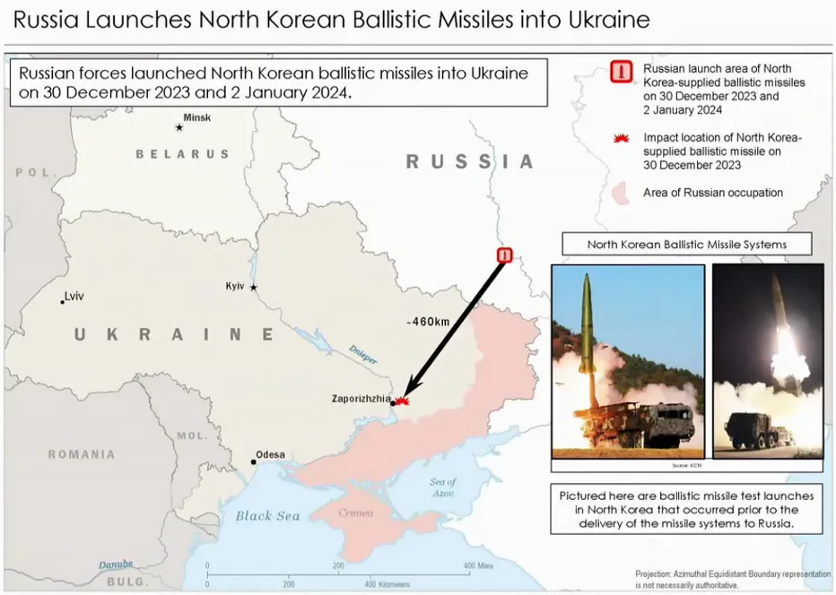 Опубликованная Белым домом информация о месте запуска северокорейских ракетБолее того, есть риск того, что российская армия в будущем будет получать ракеты от Ирана. Издание The Washington Post ещё в октября прошлого года писало, что иранские власти имели намерения передать России ракеты «Фатех-110» и «Золфагар», но в конечном итоге сделка не состоялась. Однако в октябре 2023 года официально истёк срок экспортных ограничений ракетных технологий, наложенных на страну Советом безопасности Организации объединённых наций (ООН), поэтому теперь Тегеран может без проблем поставить ракеты российской армии.