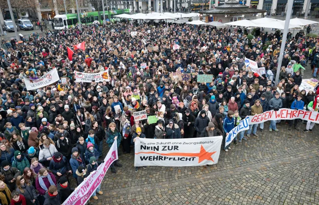 Вчера утром в ряде городов Германии прошли митинги, организованные общенациональными молодёжными организациями. Поводом для протестов послужила реформа военной службы, которая предусматривает заполнение всеми 18-летними юношами анкет о состоянии здоровья и готовности пройти добровольную службу в вооружённых силах. Несмотря на то, что пока не идёт речи о возвращении всеобщей воинской повинности, молодёжь обеспокоена возвращением к призывной службе.