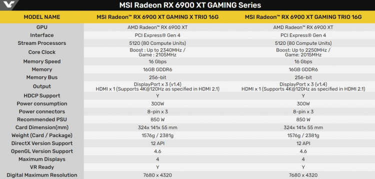Radeon RX 6900 XT будет доступна в двух вариациях - Radeon RX 6900 XT Gaming Trio и Radeon RX 6900 XT Gaming X Trio. Видеокарты используют улучшенную систему охлаждения Tri Frozr 2: вентиляторы Torx 4.0, радиатор с теплопроводными трубами, усиливающая металлическая пластина, рассеивающая тепло.