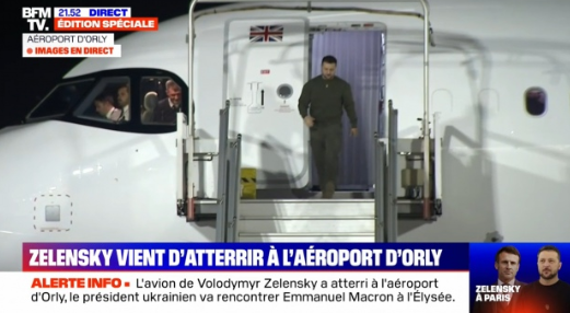 Зато известно, что следующей целью визита Зеленского стала Франция: в 23:45 по московскому времени он прибыл в аэропорт Париж-Орли, где его встретил караул французской армии и Министр Вооружённых сил Франции Себастьен Лекорню. Украинский президент должен встретиться с Президентом Франции Эмманюэлем Макроном и немецким канцлером Олафом Шольцем в Елисейском дворце.