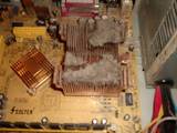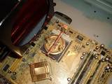 Ну что ж, победный одиночный писк спикера при загрузке и... висим. Перезагрузка результатов не дала. Вынимаю батарейку, сижу жду. Загрузился, выставляю настройки по умолчанию и система стартует нормально, прогоняю ее через s&m, 3dmark '03 - ни глюков, ни артефактов, все нормально. При номинальных частотах (166х10) при прогреве в течение 25 минут температура процессора не превышала 48-49 грудусов.