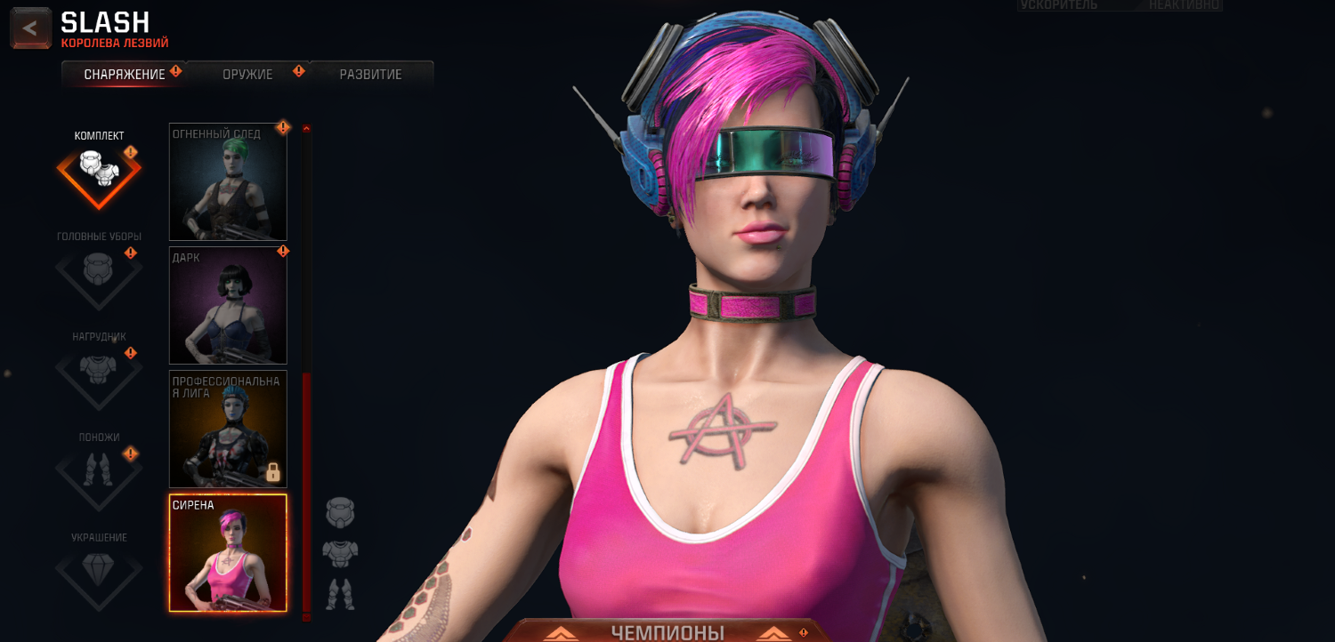 А если вы также пройдете в раздел с историей персонажа и нажмите кнопку “Вознесение”, вы получите особый набор аксессуаров. Они очень крутые и у каждого чемпиона они свои. Например, эти очки для Слэш.