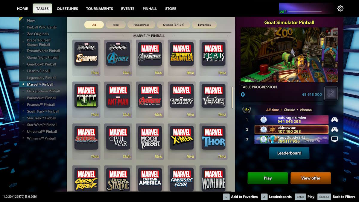 Pinball FX хорошо подойдет тем, кто любит супергеройское кино, комиксы и блокбастеры. Столов по фильмам и комиксом в этом пинболе очень много. Кроме того, здесь есть соревнование с трофеями и красивый пинбольный зал, куда помещаются все ваши покупки. Кстати, о супергероях. Столы по комиксам Marvel в Pinball FX довольно сильно отличаются от других столов. У них будто более старая атмосфера. Я попробовал их все, но ни один из них меня не увлек. Поэтому перед покупкой обязательно попробуйте их в демо-режиме. Средняя цена за DLC на скидках: 112 рублей.